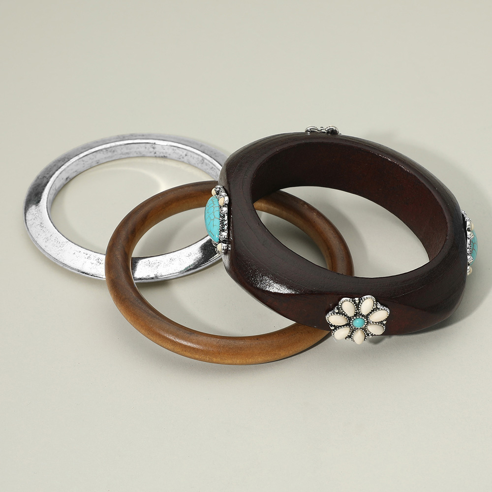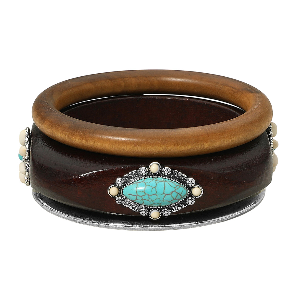 3PCS - Western Oval Turquoise Stone Accent Stackable Wooden Bangle Multi Layered Bracelets 3PCS - Western Oval Turquoise Stone Accent Stackable Wooden Bangle Multi Layered Bracelets 3PCS - Western Oval Turquoise Stone Accent Stackable Wooden Bangle Multi Layered Bracelets
