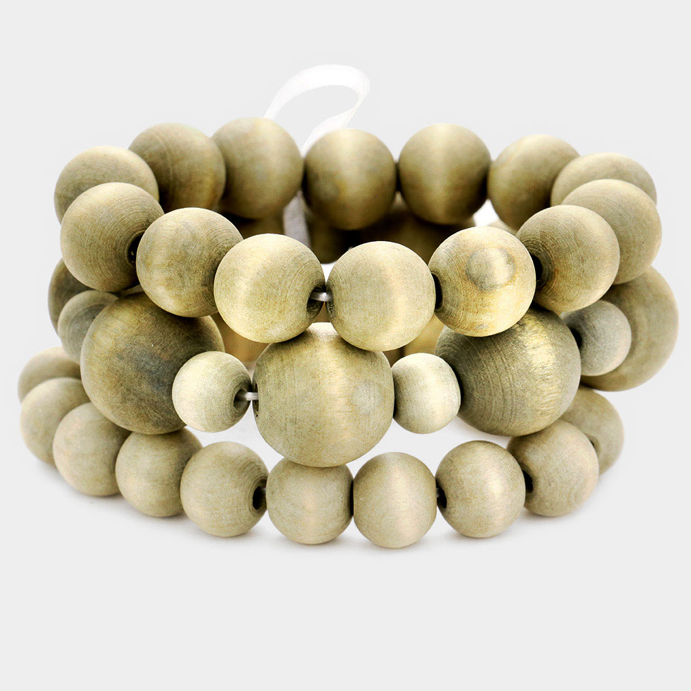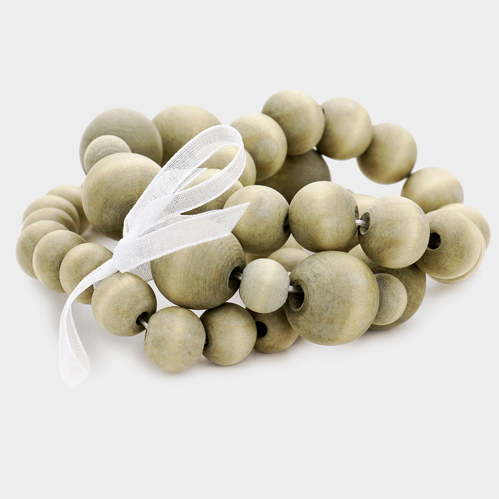 3PCS - Wood Ball Ribbon Stretchable Bracelets