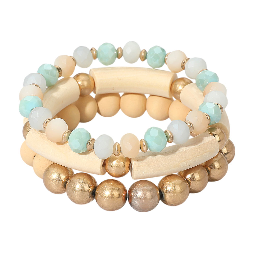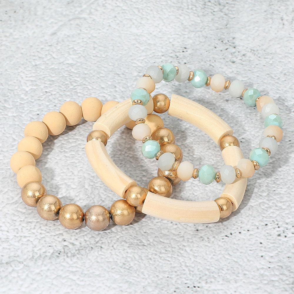 3PCS - Wood Faceted Beaded Stretch Bracelets
