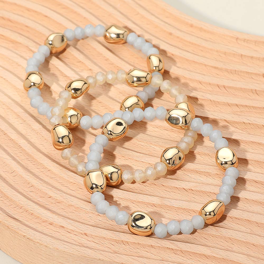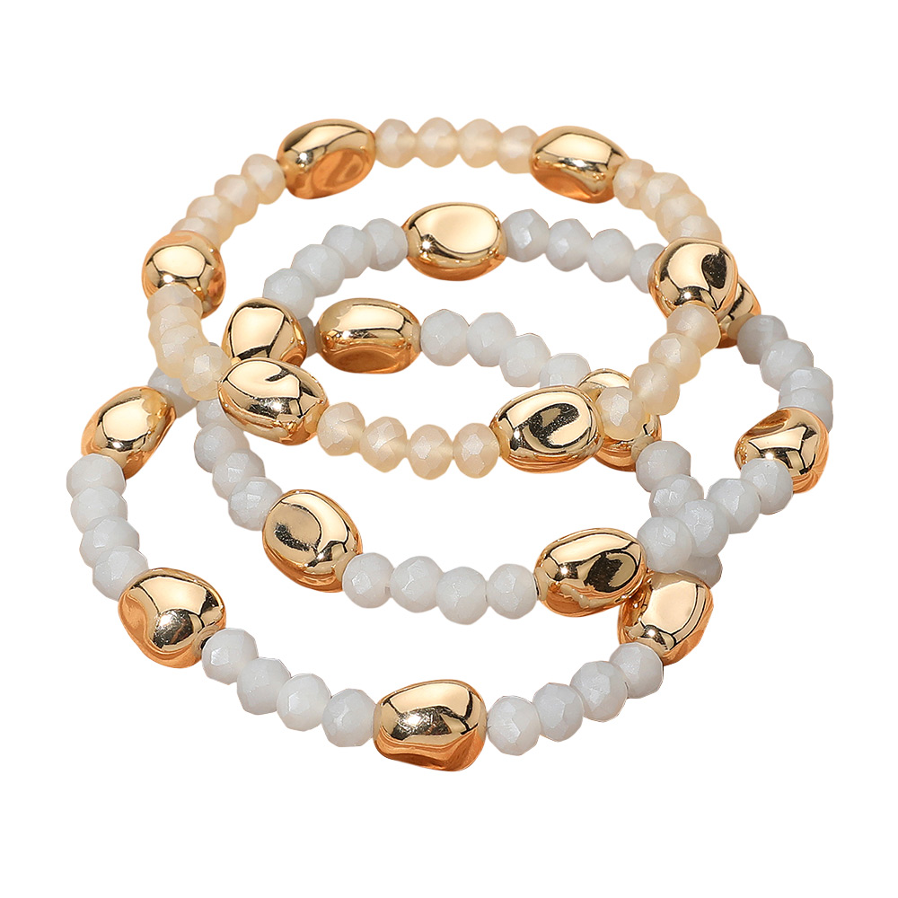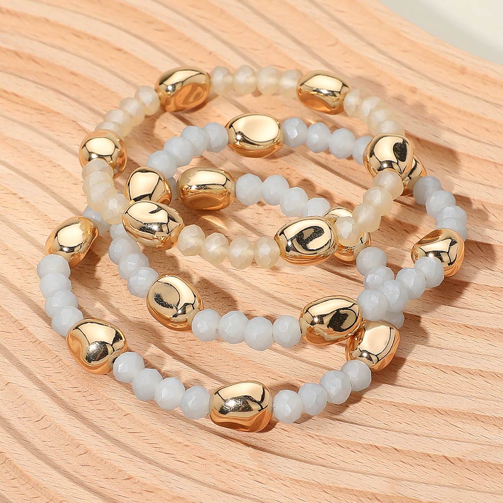 3PCS - Worn Metal Pebble Beaded Stretch Multi Layered Bracelets