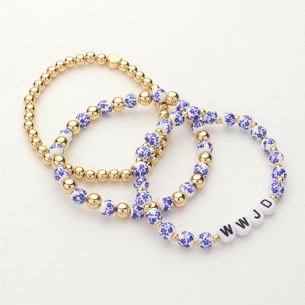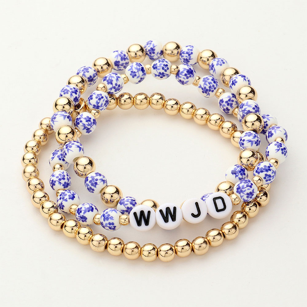 3PCS - WWJD Message Beaded Stretch Multi Layered Bracelets