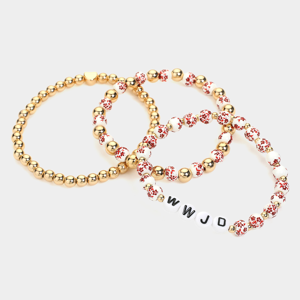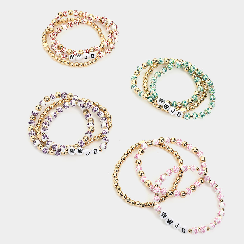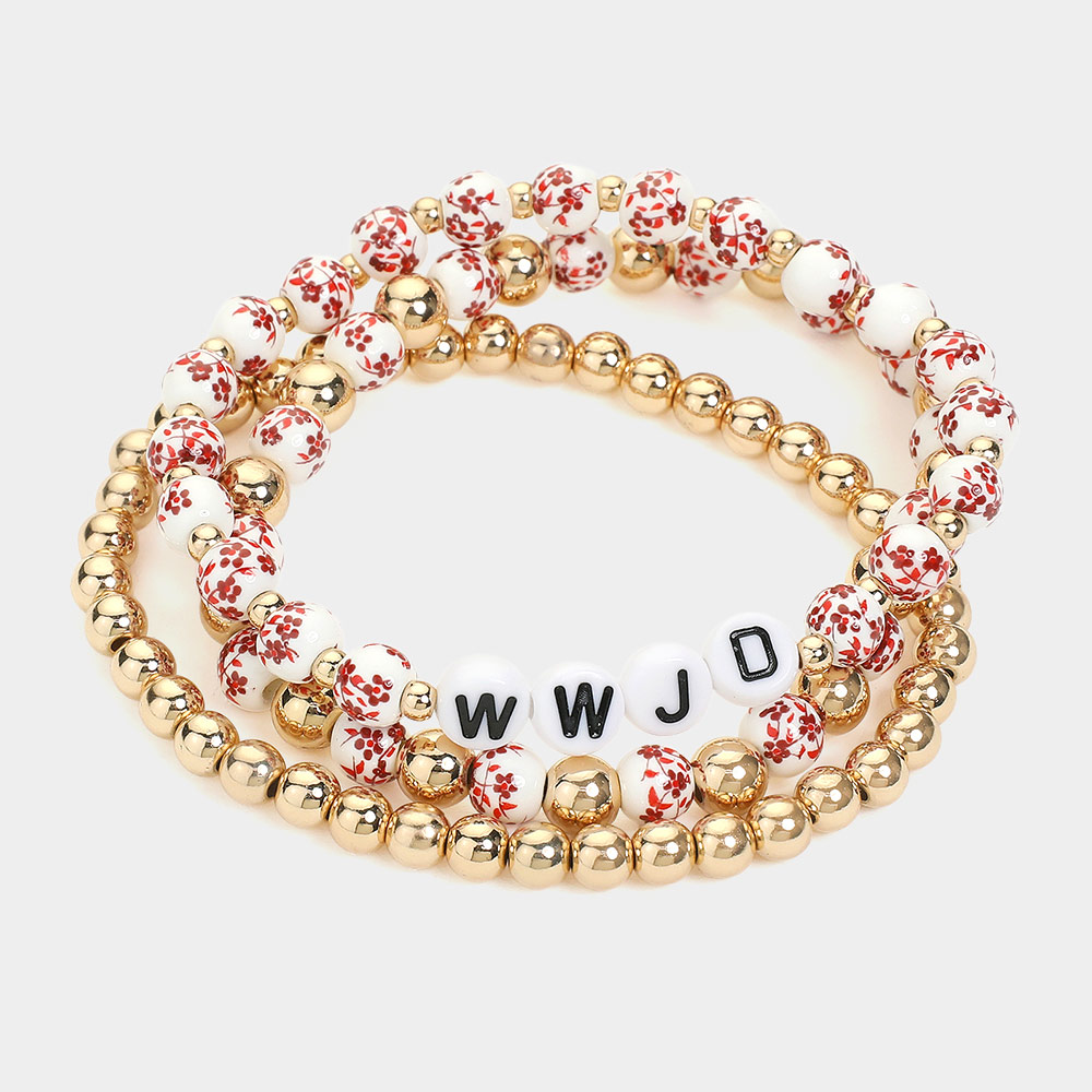 3PCS - WWJD Message Beaded Stretch Multi Layered Bracelets