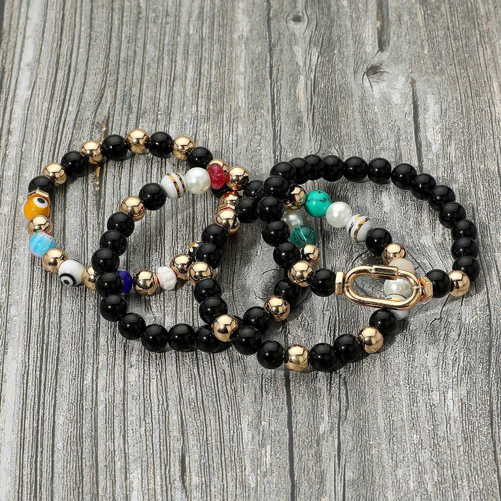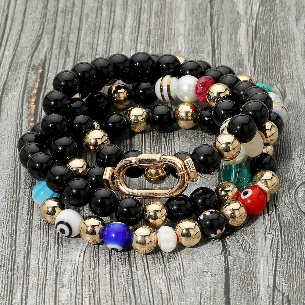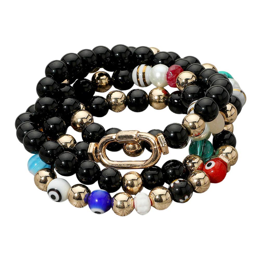 Details • Size : 1.75" H • Stretchable • Fashionable multi-strand bracelet featuring black and metallic beads with colorful accent beads. Perfect for layering or wearing solo to add a modern, playful touch to casual or evening outfits. • Lead and Nickel Compliant