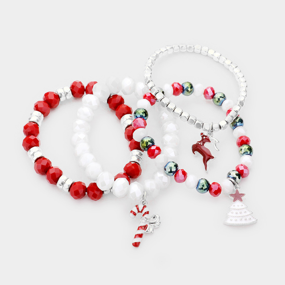 4PCS - Christmas Rudolph Charm Bead Stretch Layered Bracelet