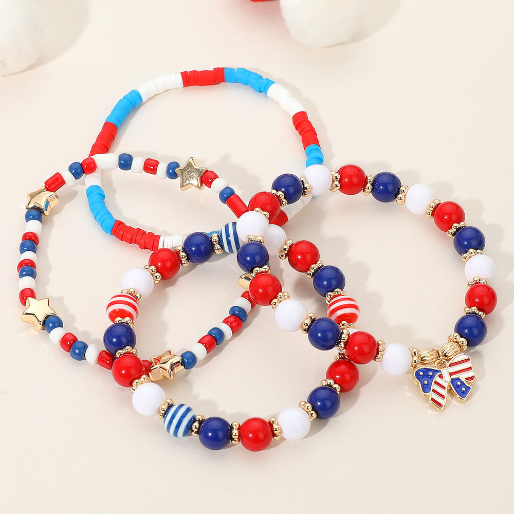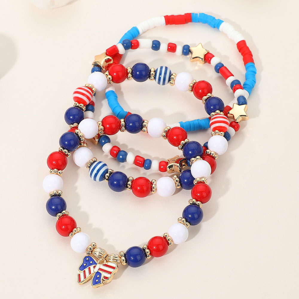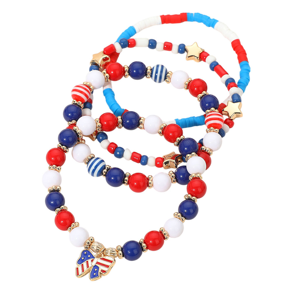 4PCS - Enamel American USA Flag Bow Charm Beaded Stretch Multi Layered Bracelets