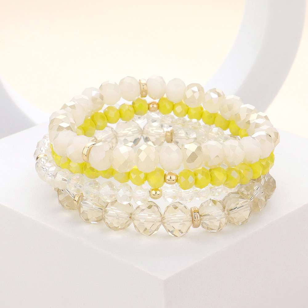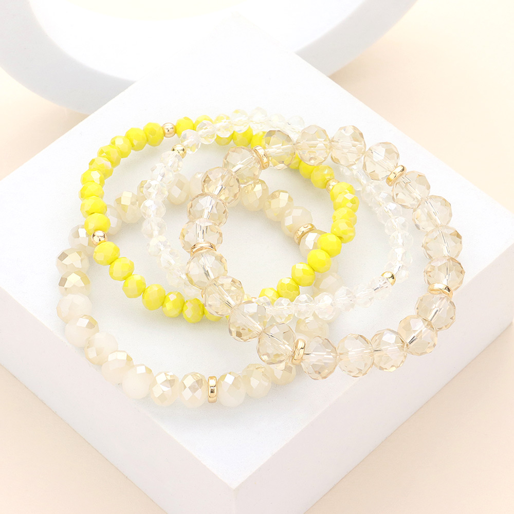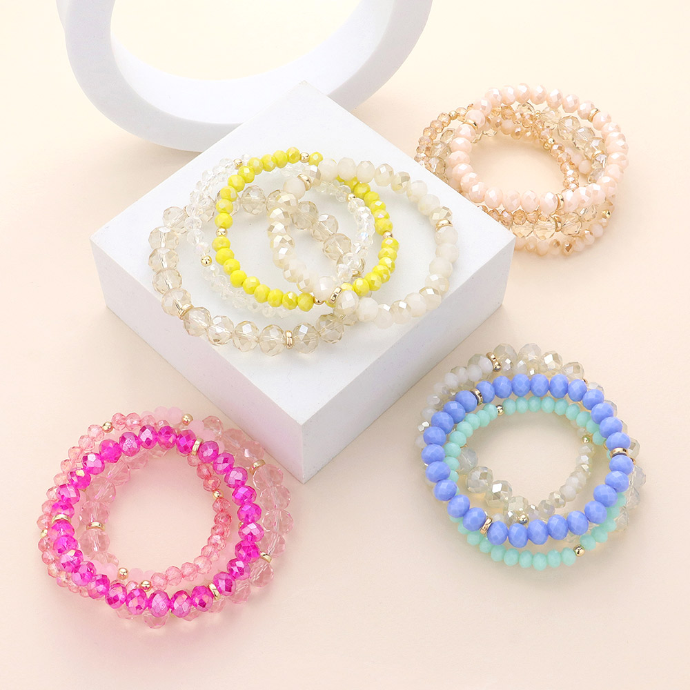 3PCS - Metal Natural Stone Wood Beaded Stretch Multi Layered Bracelets