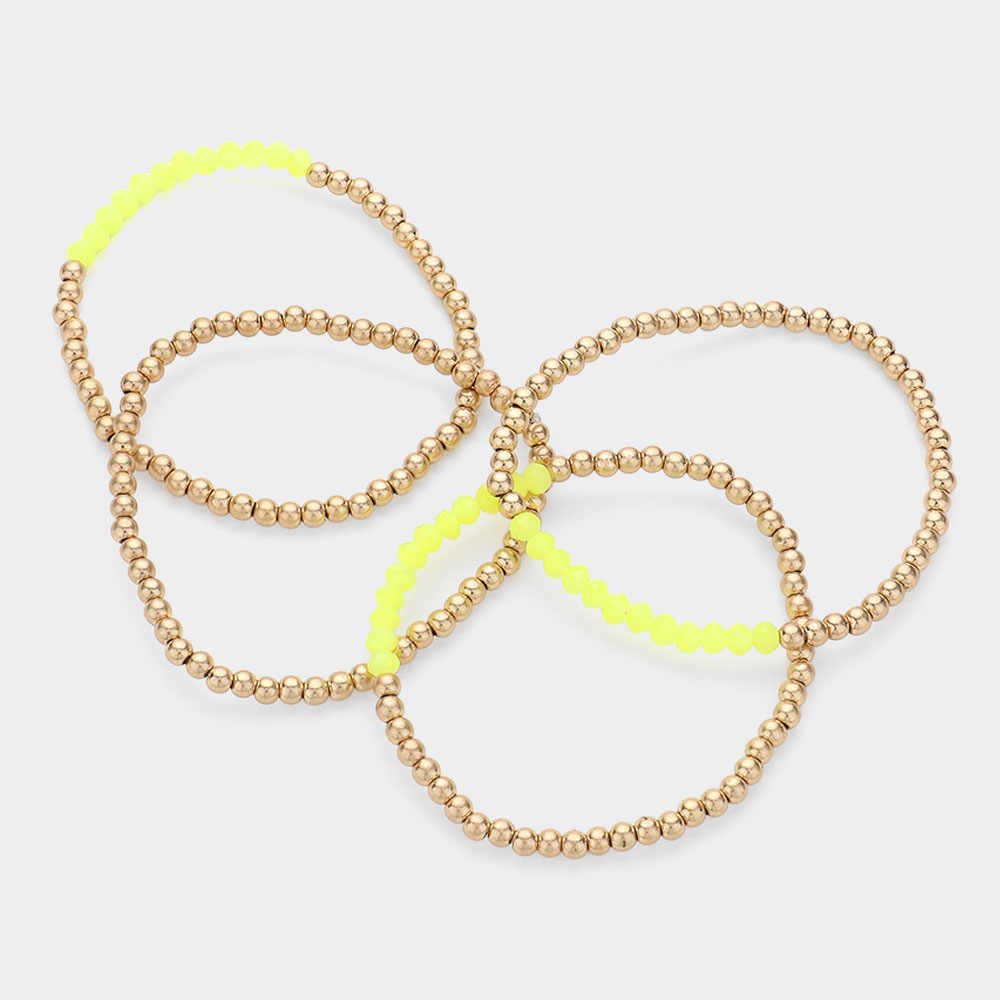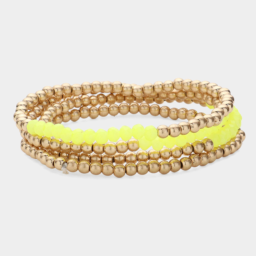 4PCS - Faceted Beaded Stretch Multi Layered Bracelets