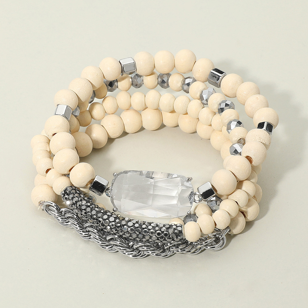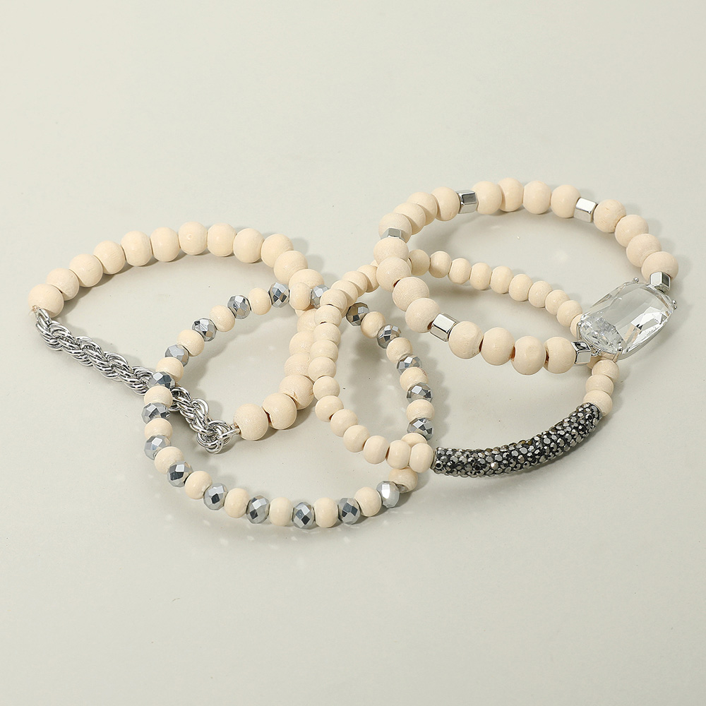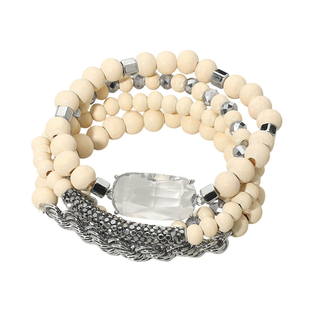 4PCS - Semi Precious Wood Faceted Beaded Stretch Bracelets