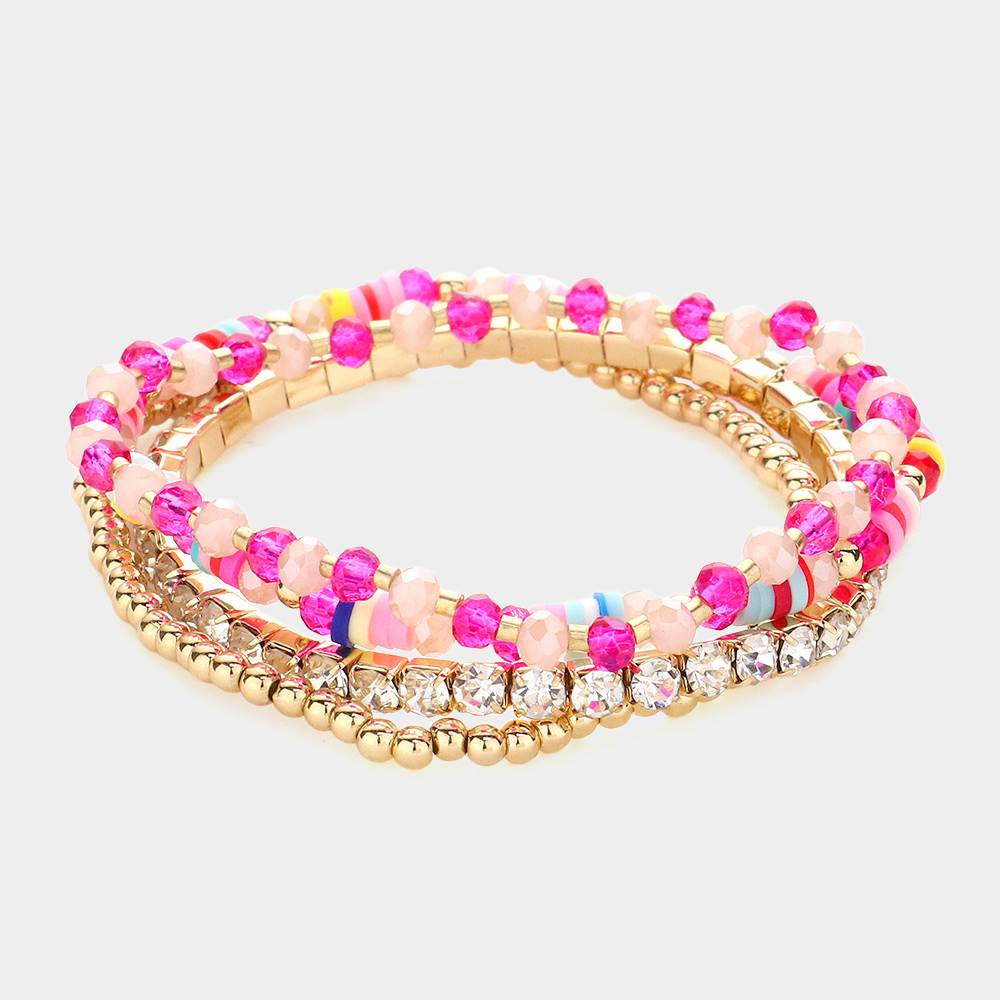 4PCS - Metal Ball Rhinestone Heishi Beaded Stretch Bracelets