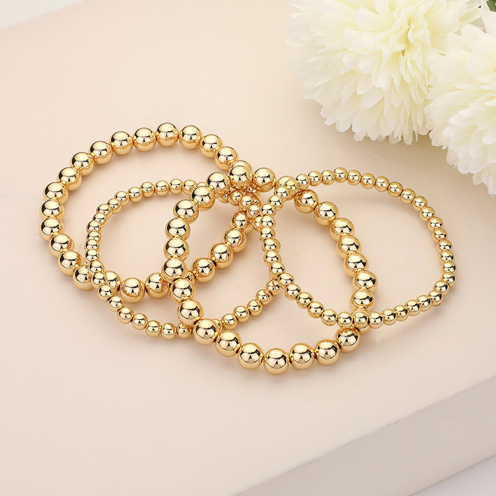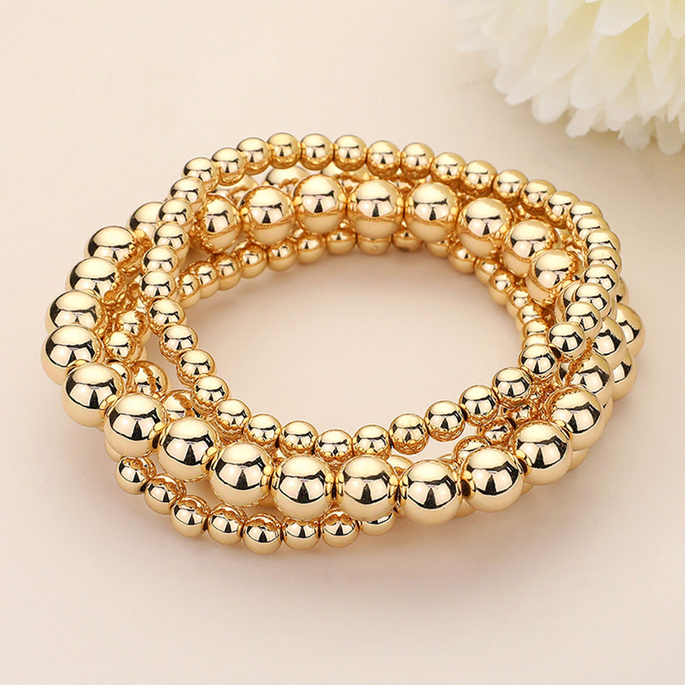 Details • Size : 1" H • Stretchable • Elegant set of stretch beaded bracelets designed for versatile wear. Perfect for stacking or wearing alone, these bracelets bring a touch of timeless charm and effortless style to any outfit. • Lead and Nickel Compliant