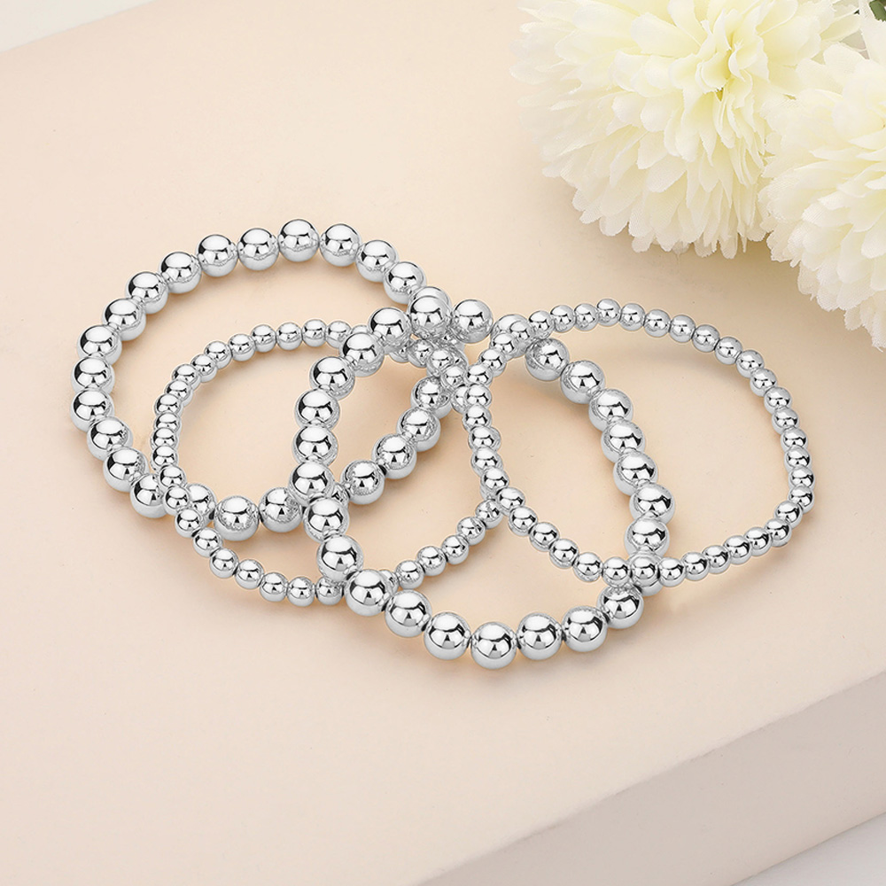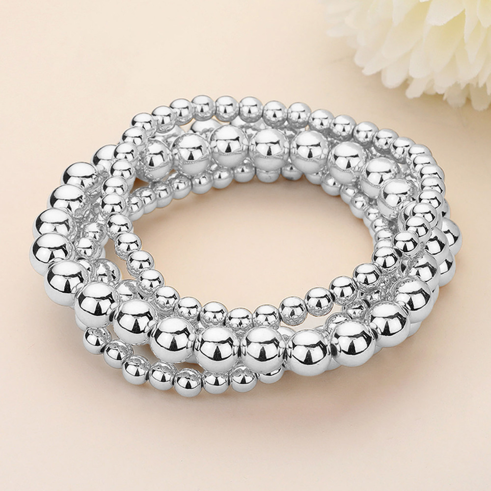Details • Size : 1" H • Stretchable • Elegant set of stretch beaded bracelets designed for versatile wear. Perfect for stacking or wearing alone, these bracelets bring a touch of timeless charm and effortless style to any outfit. • Lead and Nickel Compliant