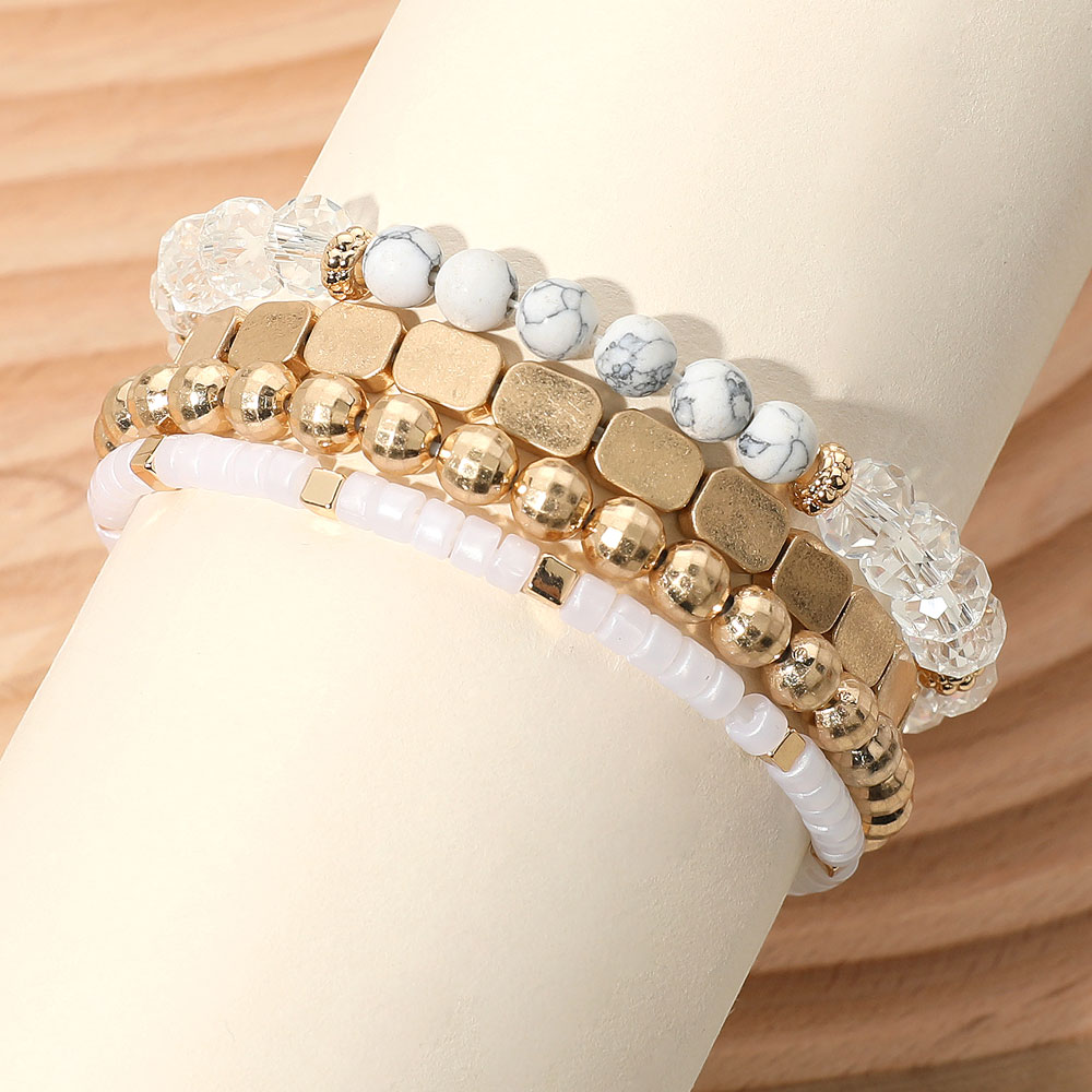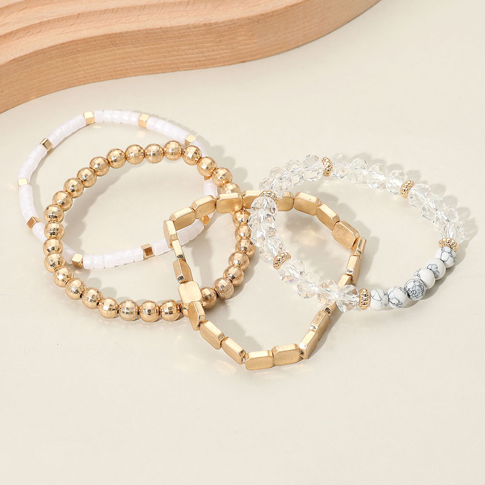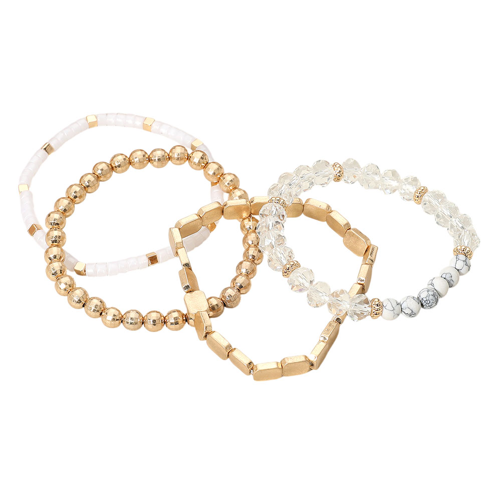 4PCS - Metal Faceted Beaded Stretch Multi Layered Bracelets