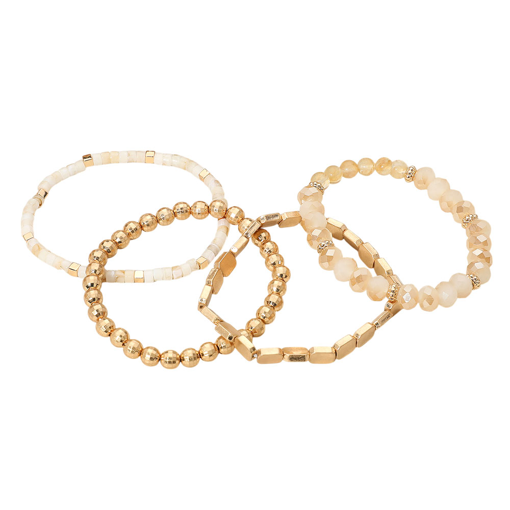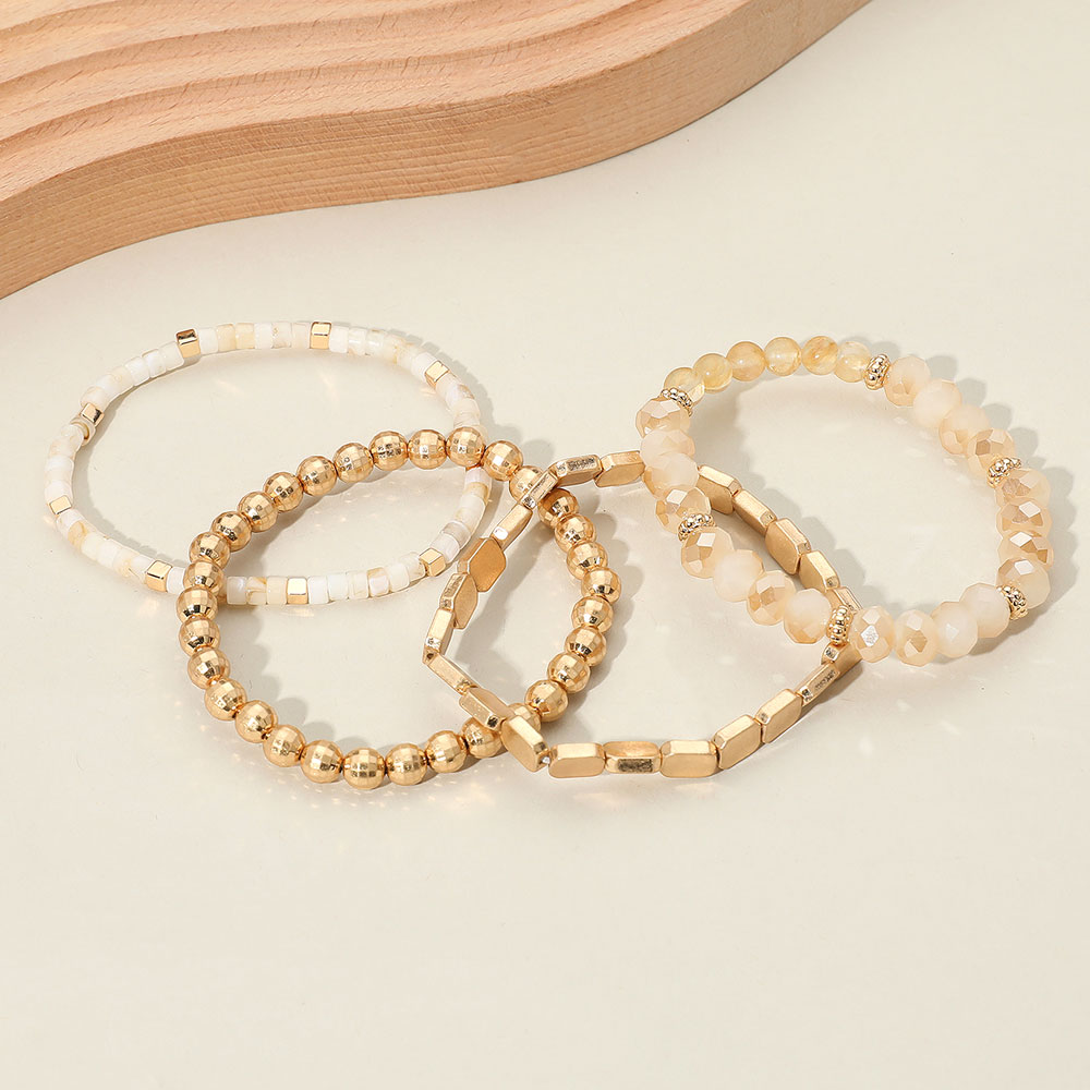 4PCS - Metal Faceted Beaded Stretch Multi Layered Bracelets