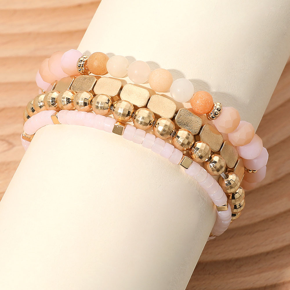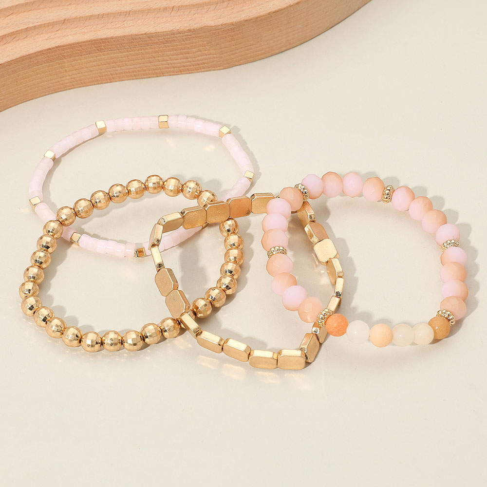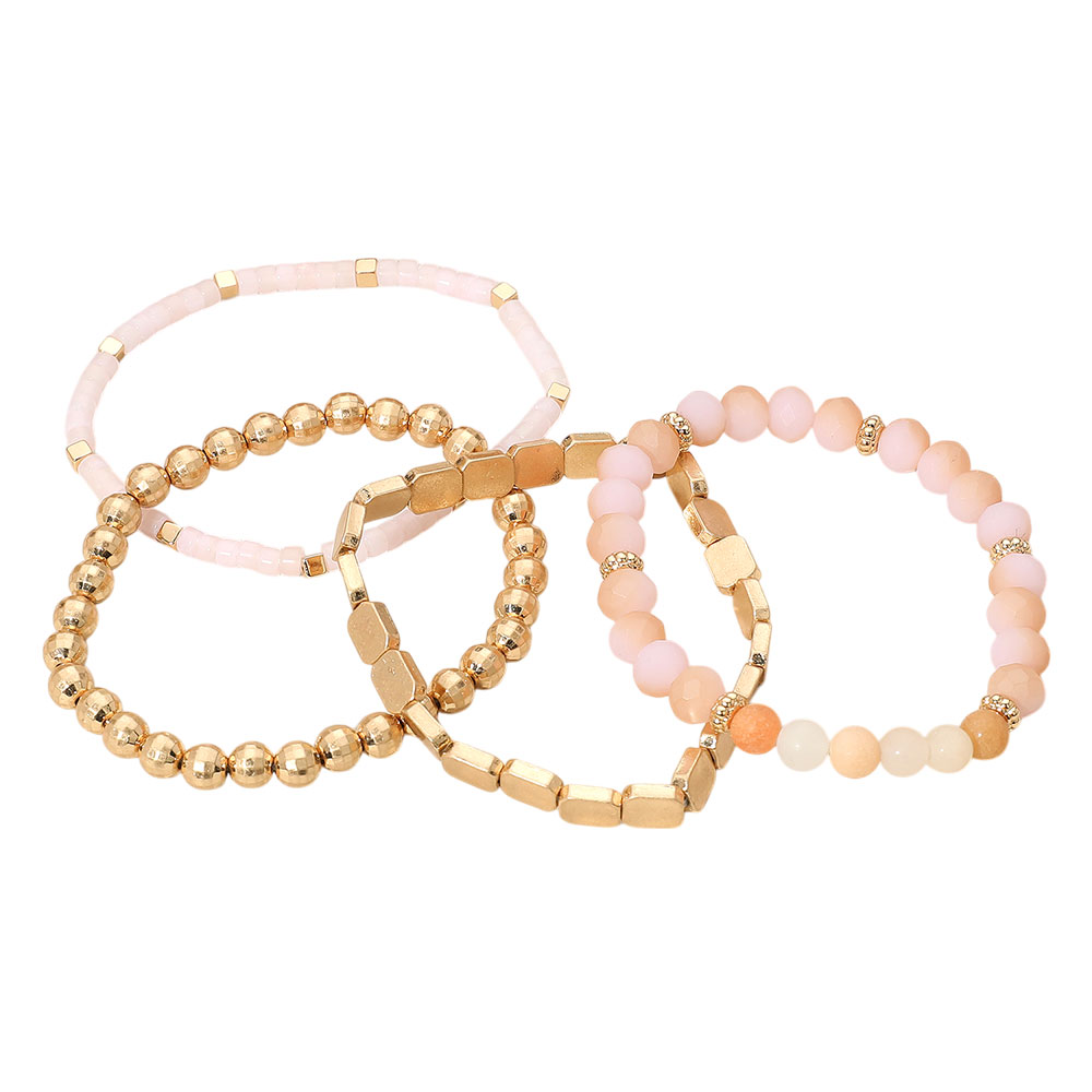 4PCS - Metal Faceted Beaded Stretch Multi Layered Bracelets