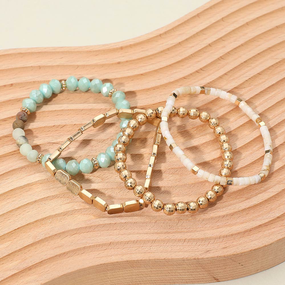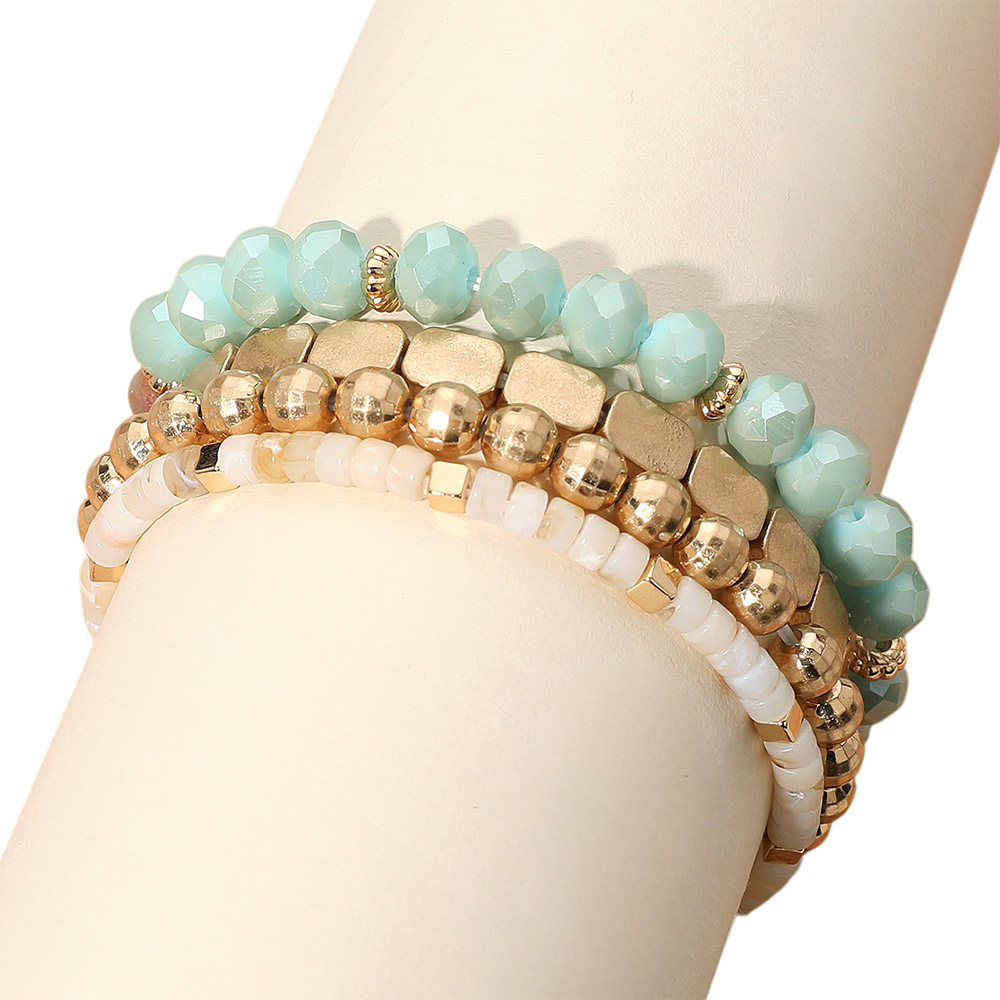4PCS - Metal Faceted Beaded Stretch Multi Layered Bracelets