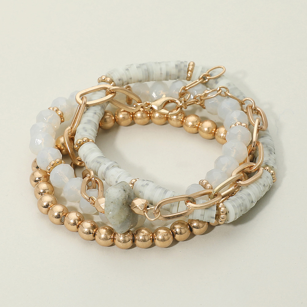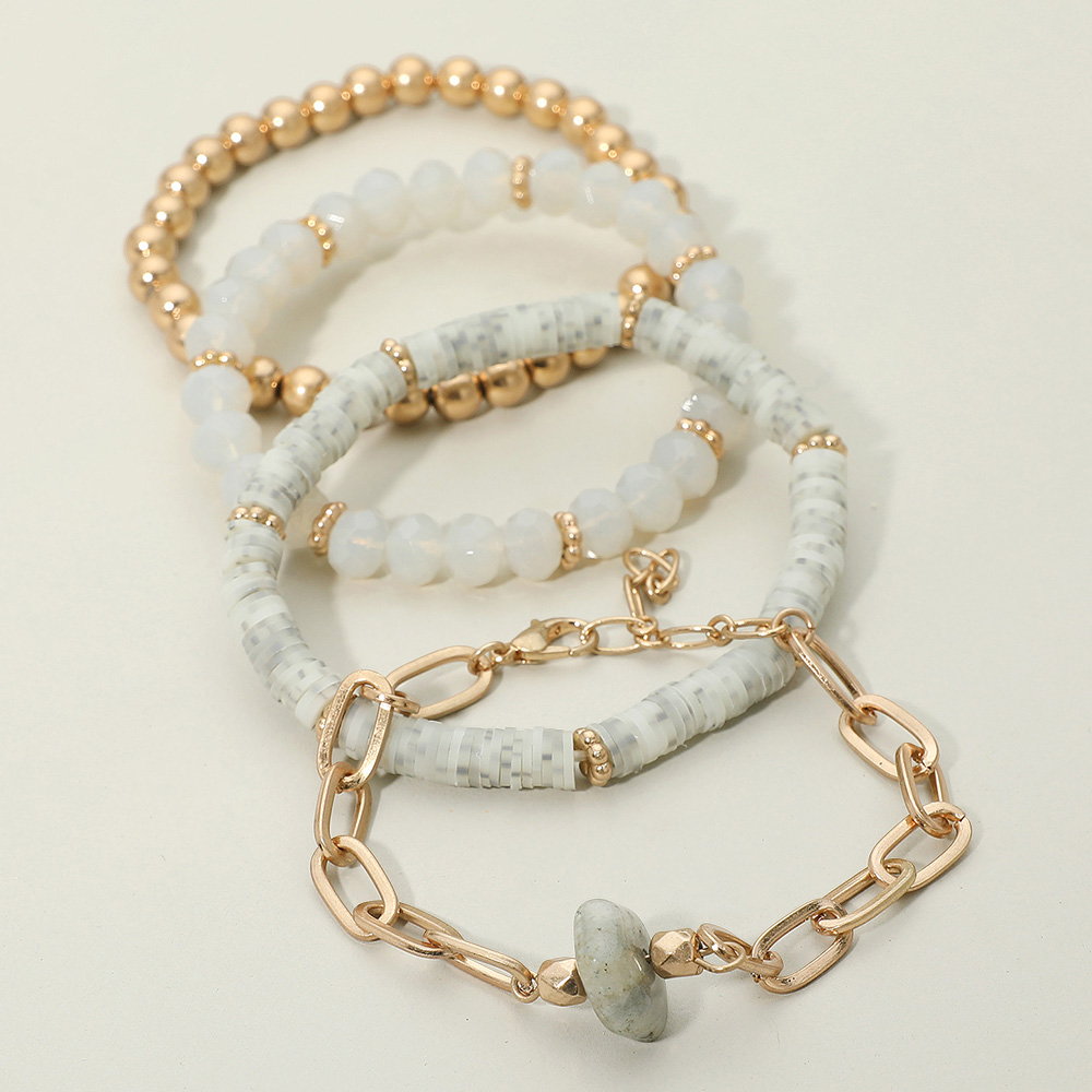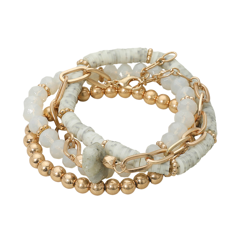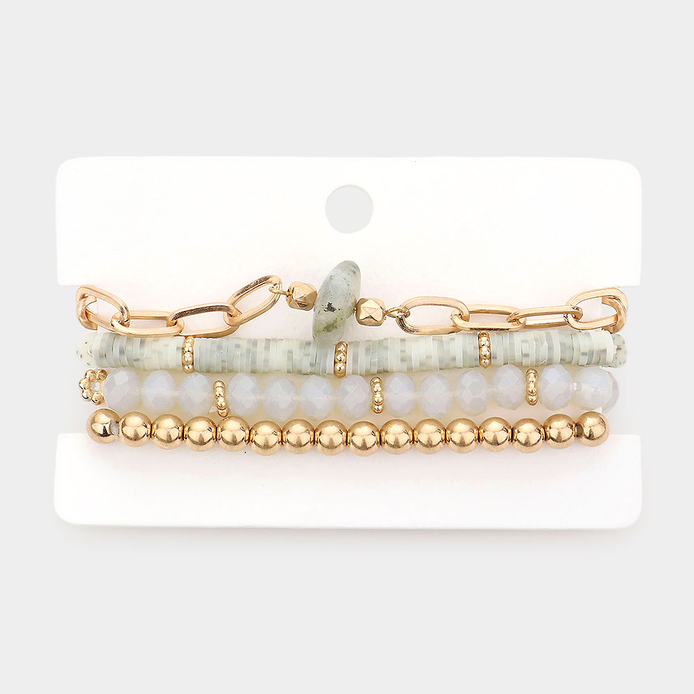 4PCS - Natural Stone Accented Chain Bracelet Multi Beaded Stretch Bracelets Set