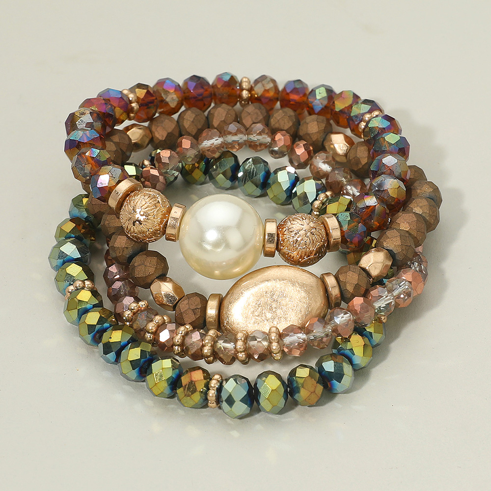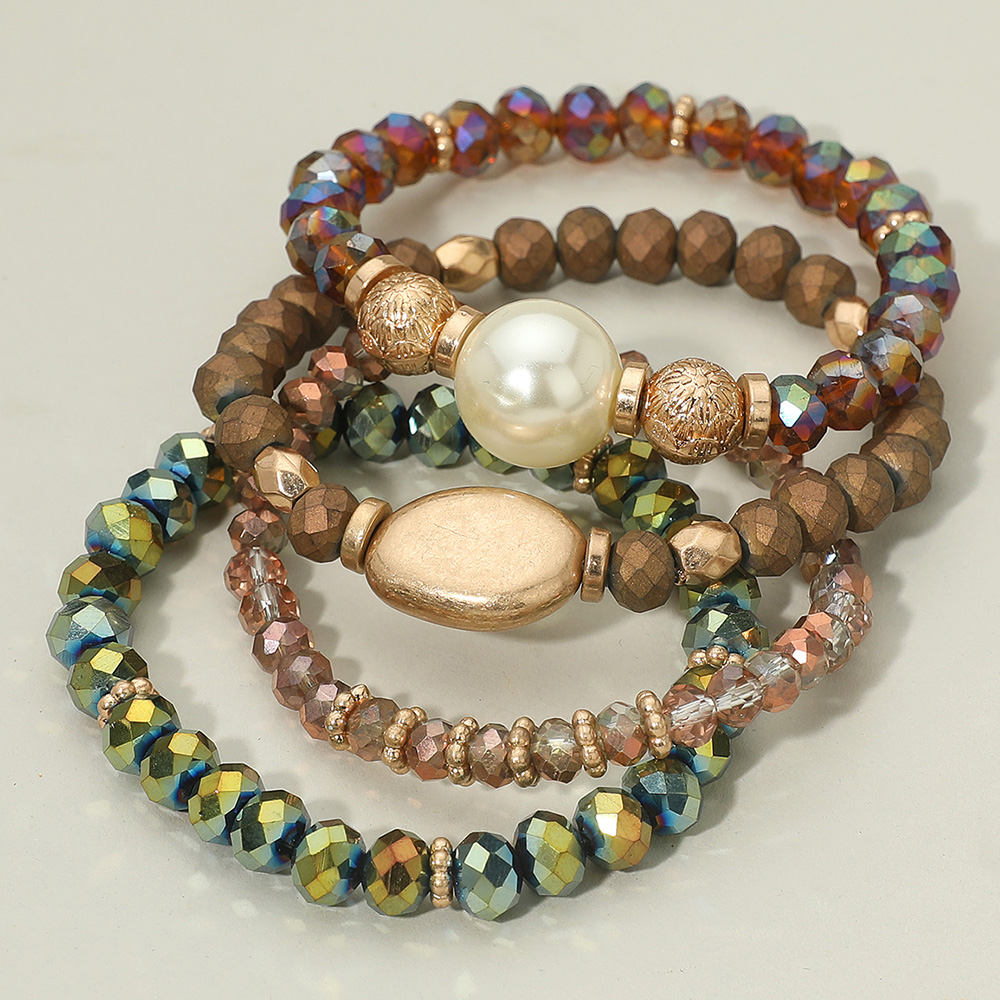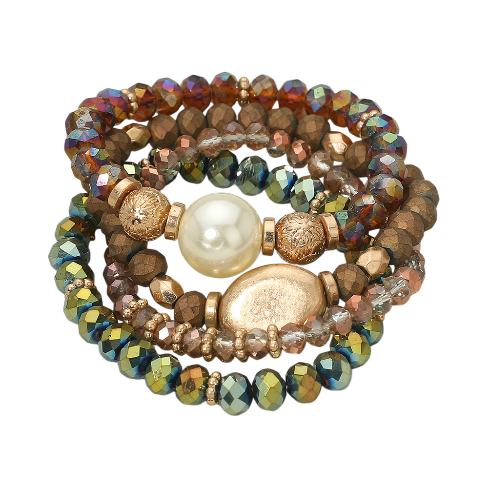 4PCS - Pearl Accented Faceted Beaded Stretch Bracelets