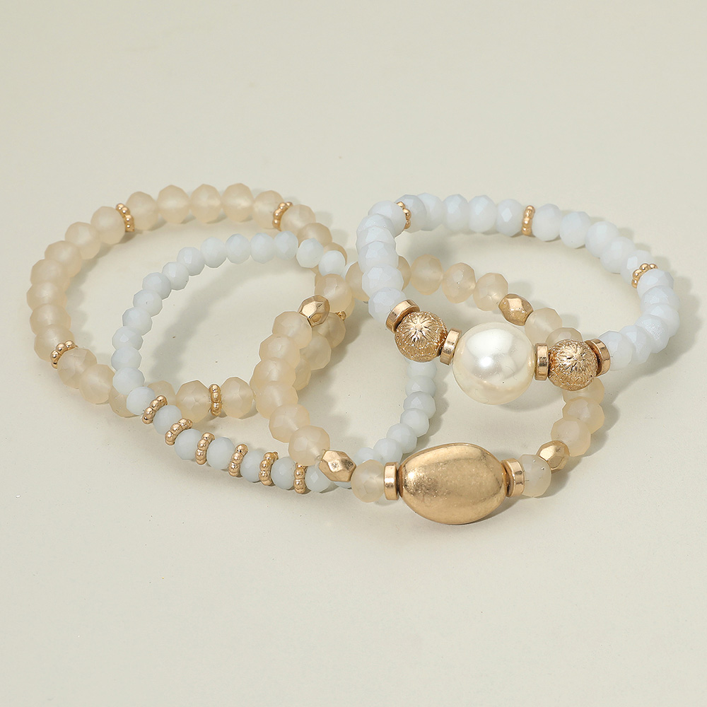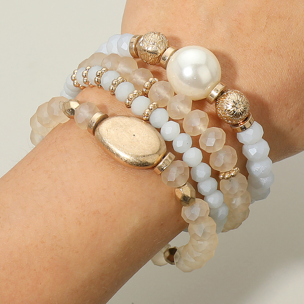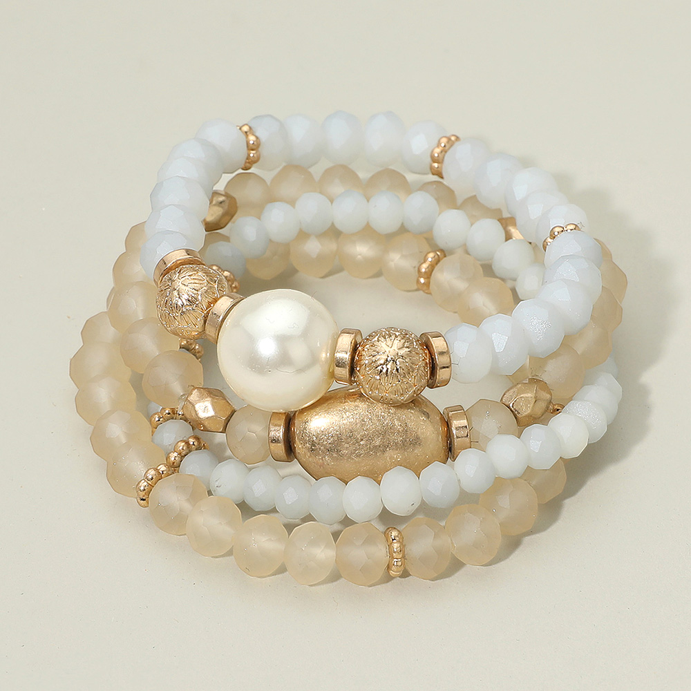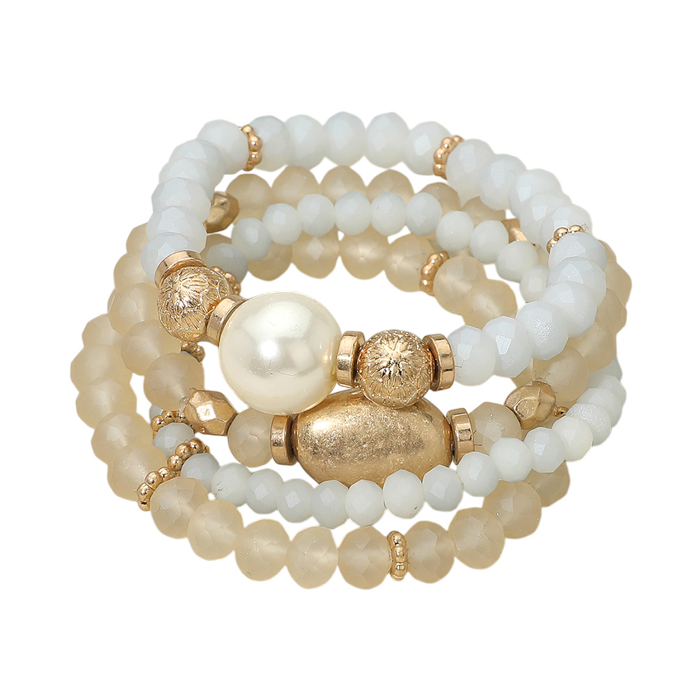 4PCS - Pearl Accented Faceted Beaded Stretch Bracelets