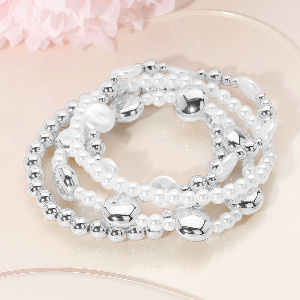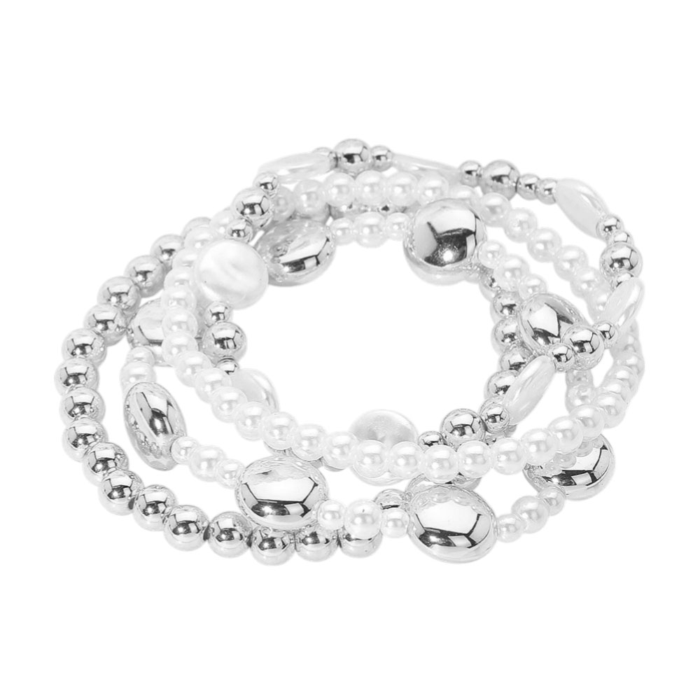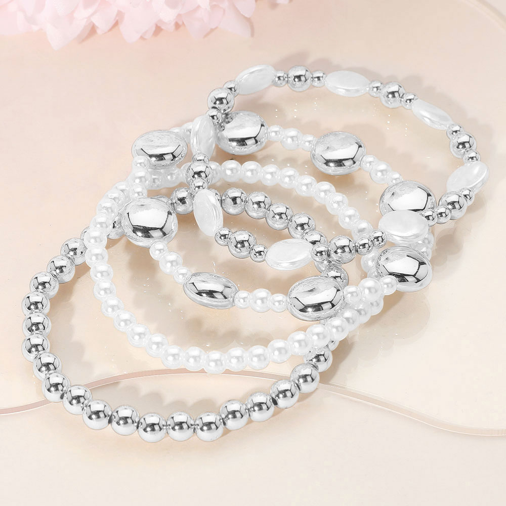 4PCS - Pearl Disc Metal Ball Beaded Stretch Multi Layered Bracelets