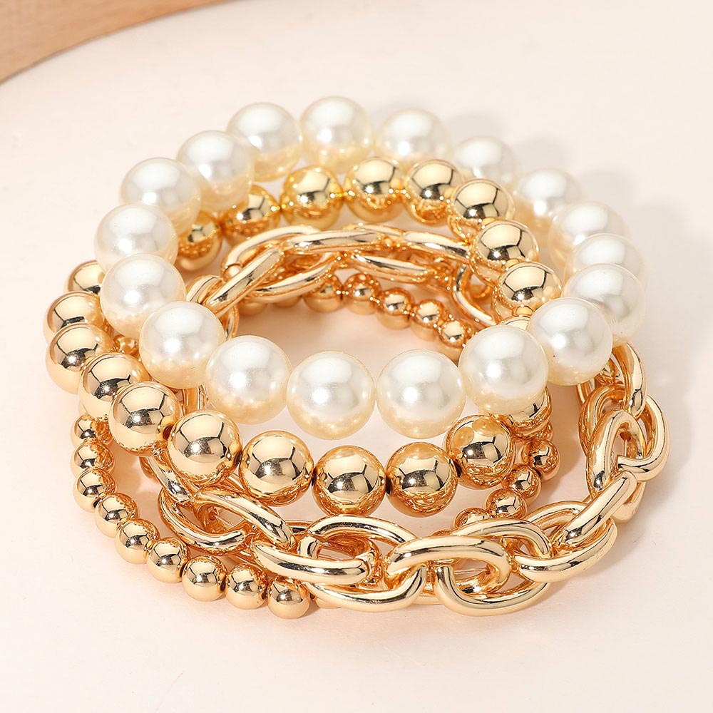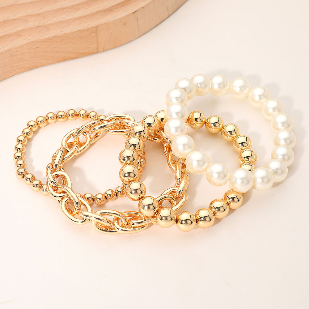 Details • Size : 1.5" H • Stretchable • This bracelet set combines smooth beads, sculpted accents, and chain detailing to create a polished stacked look. Designed for effortless styling, each piece adds dimension and texture, making the set ideal for both casual outfits and refined ensembles. • Lead and Nickel Compliant