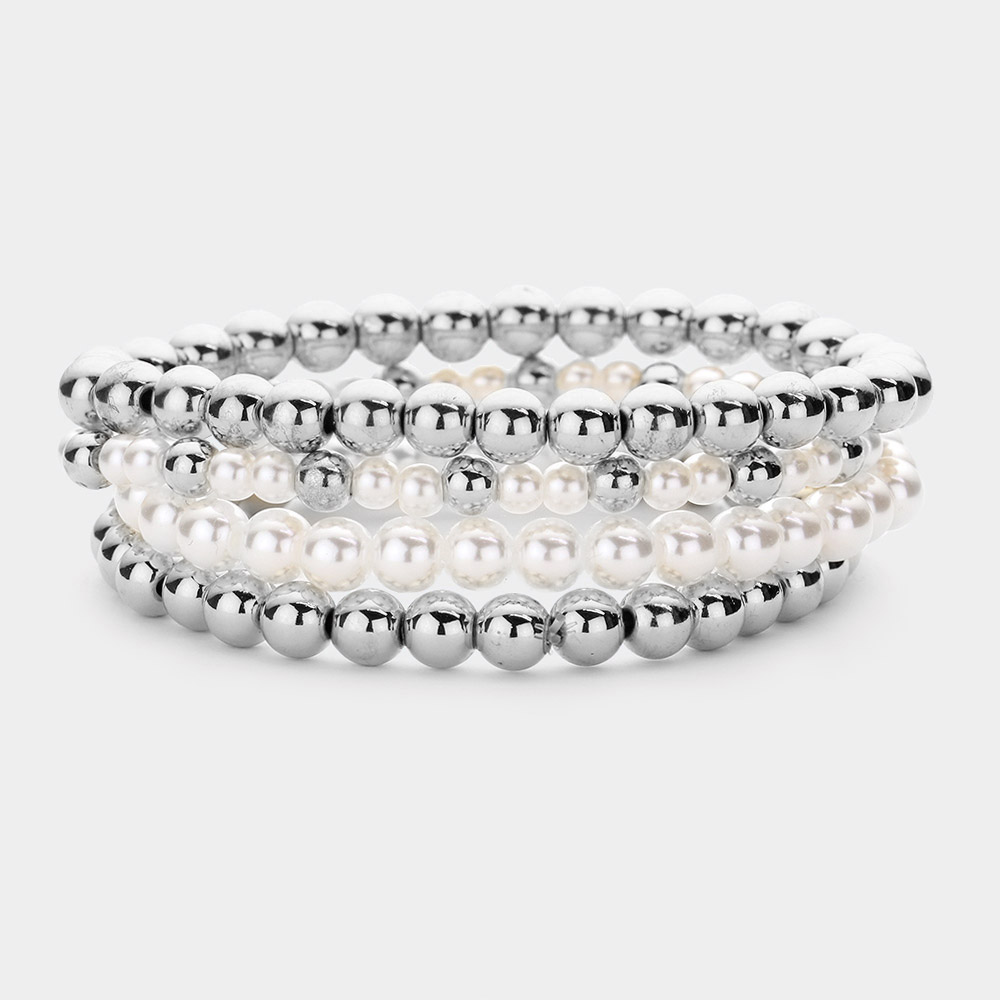 4PCS - Pearl Metal Ball Stretch Bracelets