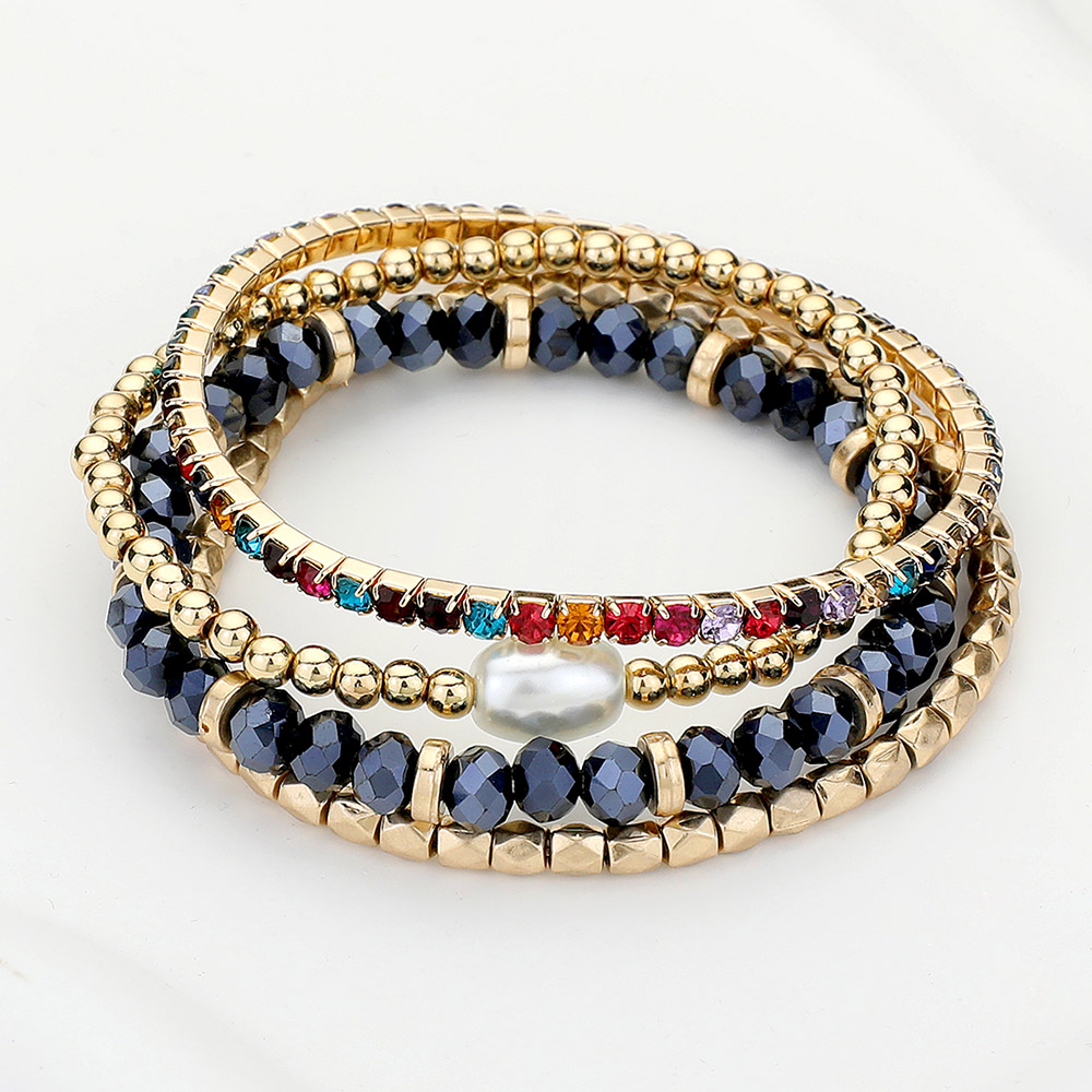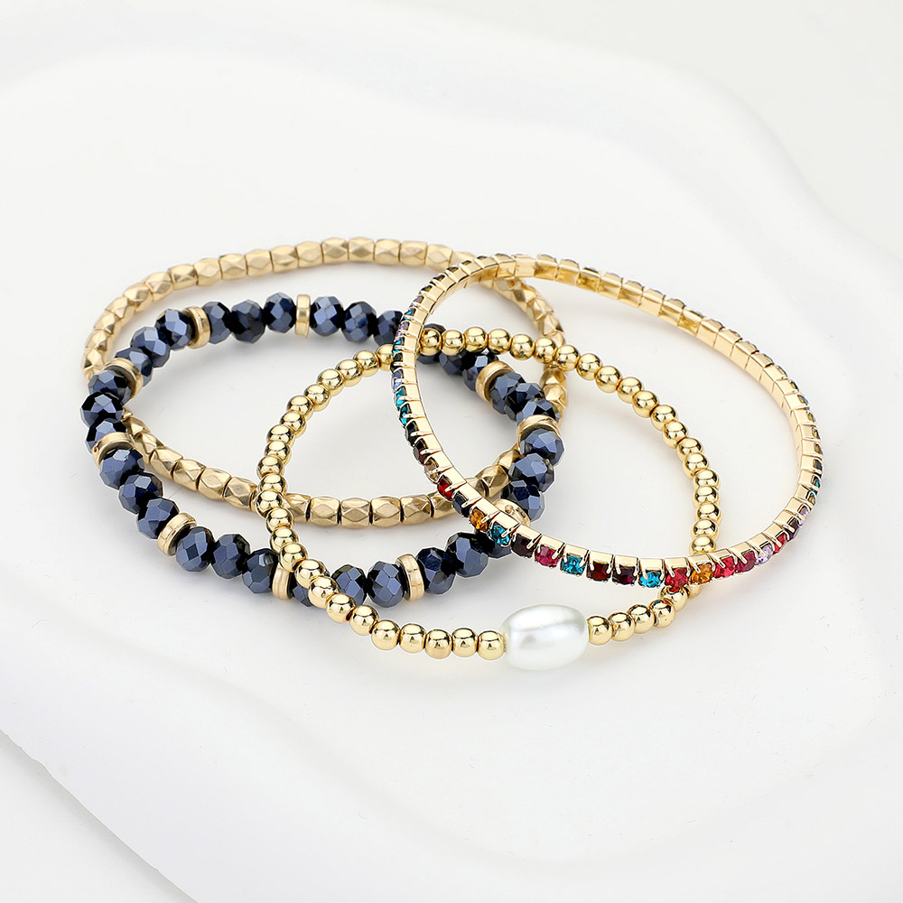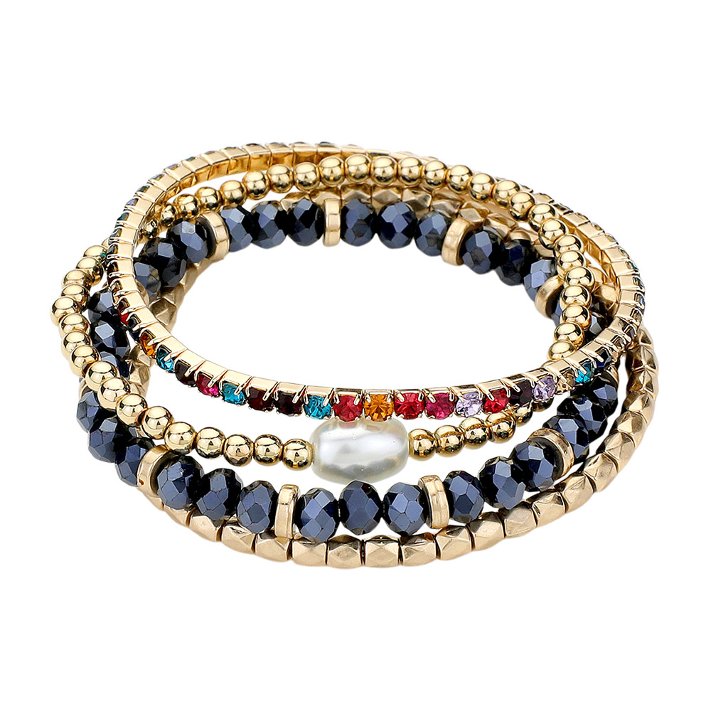 4PCS - Pearl Pointed Rhinestone Metal Ball Faceted Beaded Stretch Multi Layered Bracelets