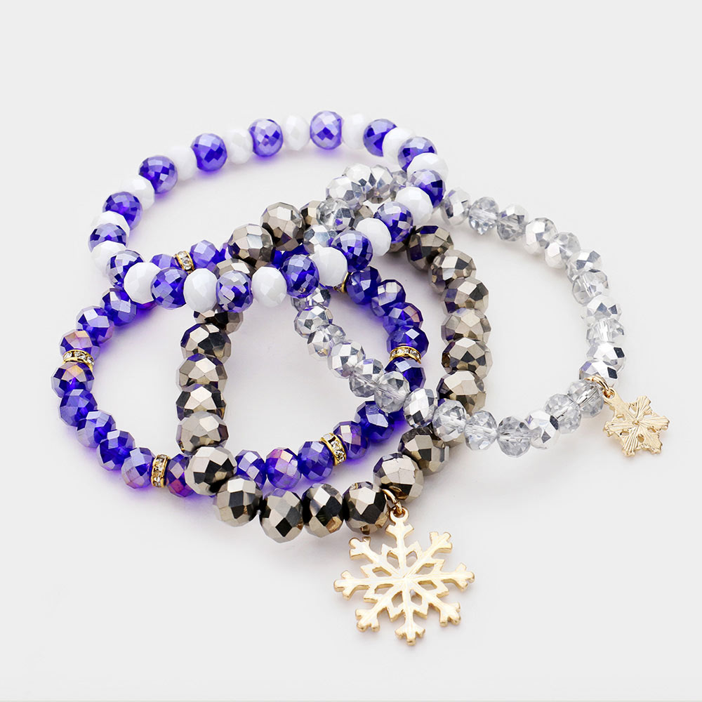 4PCS - Christmas Snowflake Charm Bead Stretch Layered Bracelets