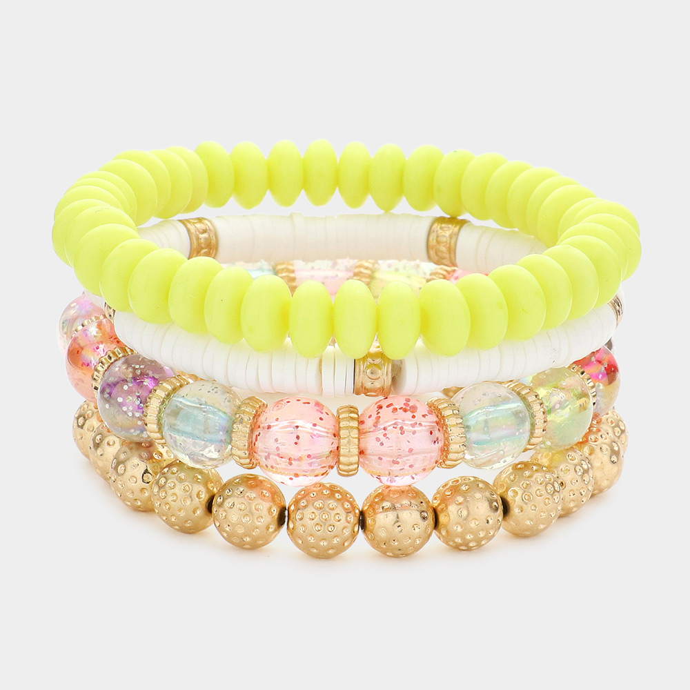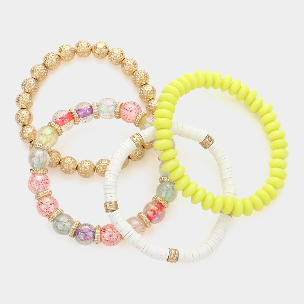 4PCS - Textured Metal Ball Heishi Beaded Stretch Bracelets