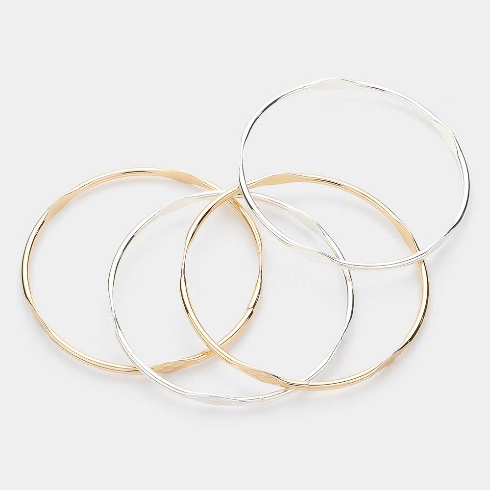 4PCS - Textured Metal Pointed Multi Layered Bangle Bracelets