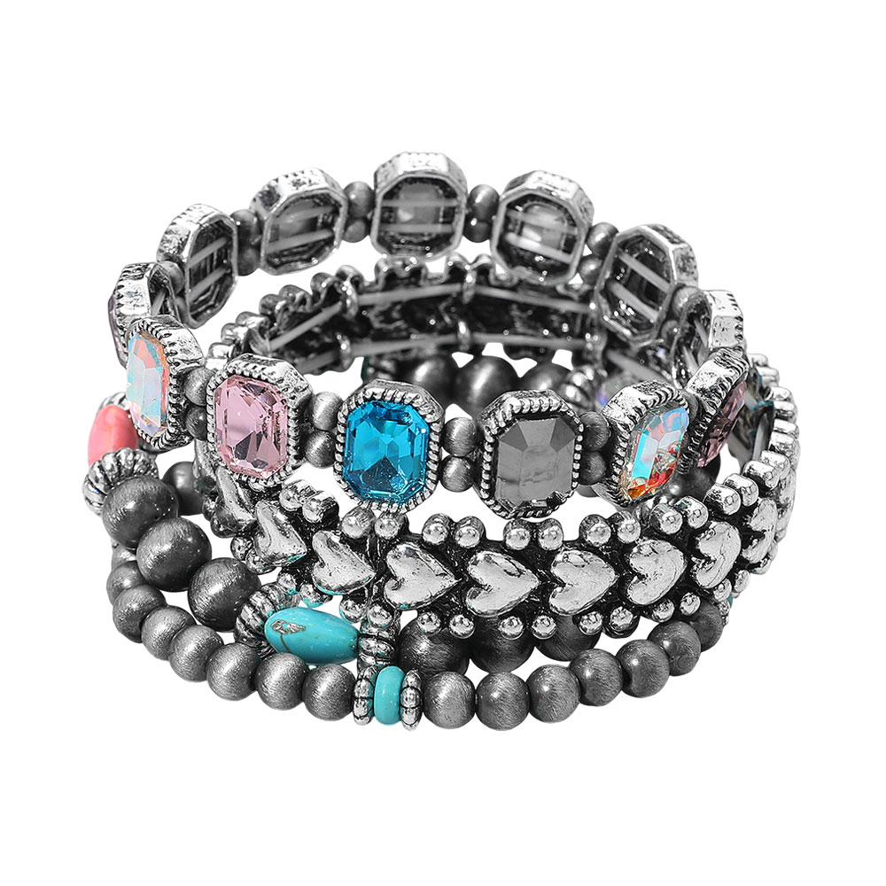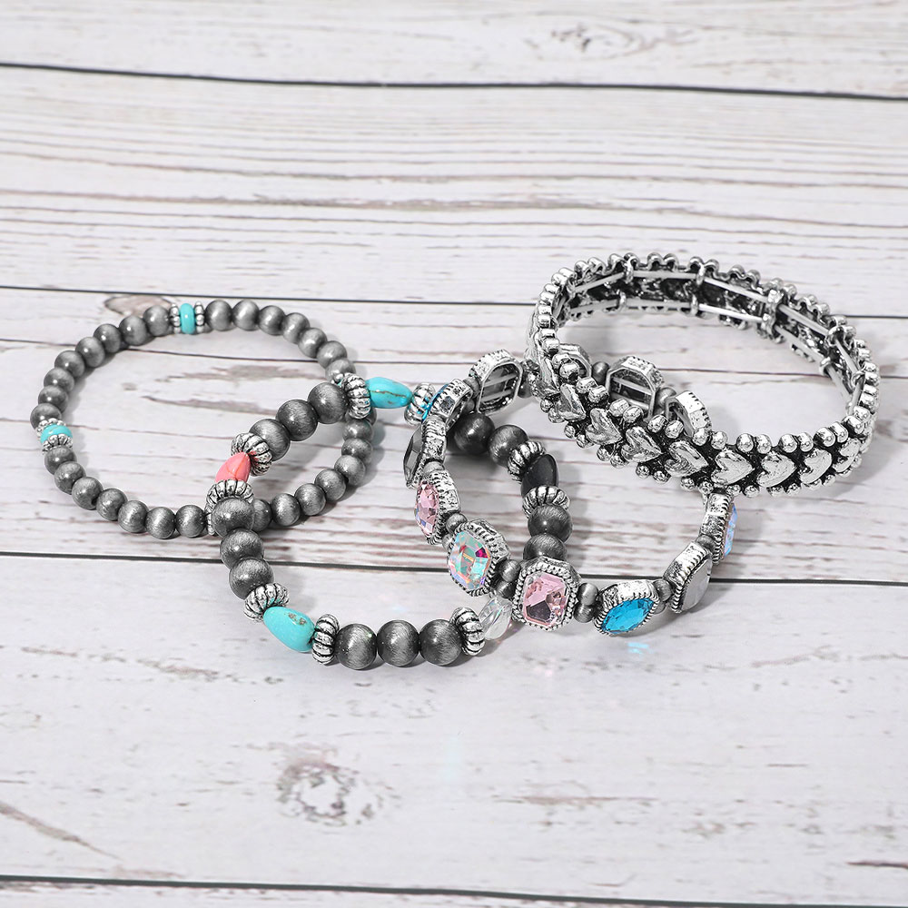 4PCS - Vintage Gem Beaded Stretch Multi Layered Bracelets 4PCS - Vintage Gem Beaded Stretch Multi Layered Bracelets 4PCS - Vintage Gem Beaded Stretch Multi Layered Bracelets