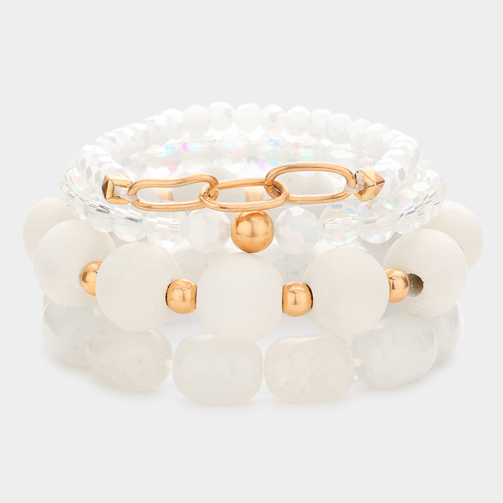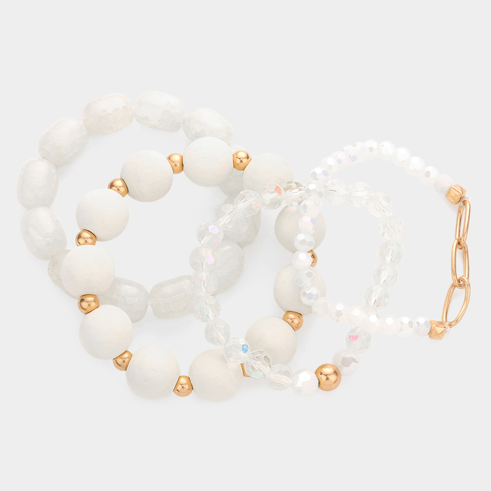 4PCS - Wood Natural Stone Faceted Beaded Stretch Bracelets
