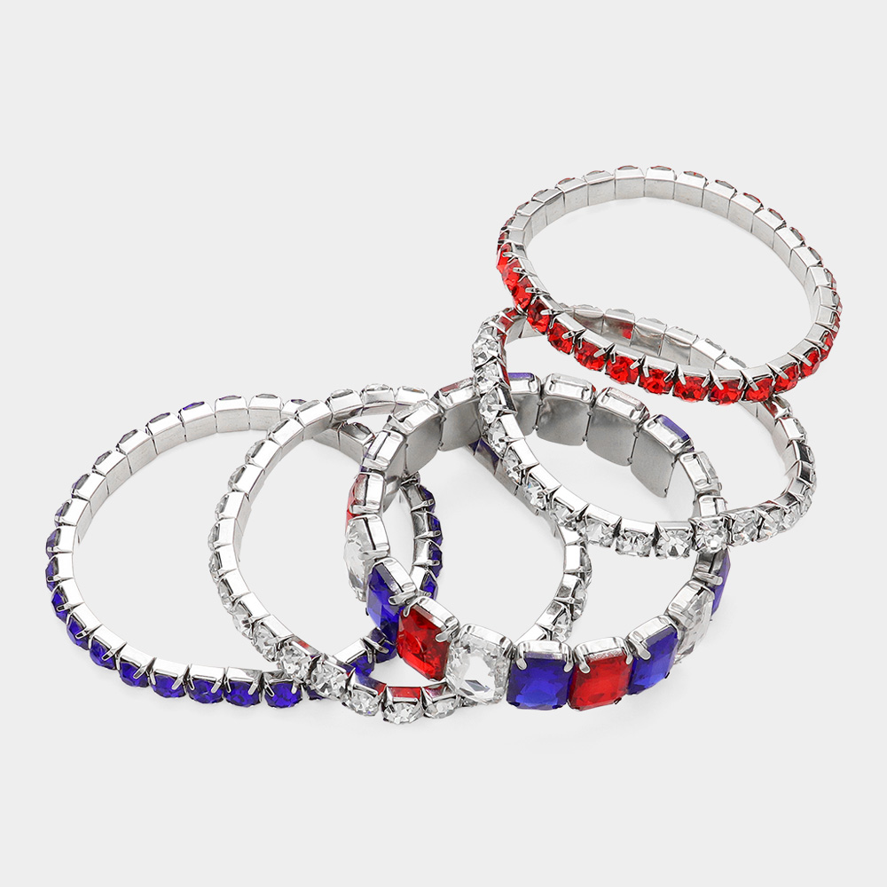5PCS - American USA Theme Emerald Cut Round Stone Stretch Evening Bracelets 5PCS - American USA Theme Emerald Cut Round Stone Stretch Evening Bracelets 5PCS - American USA Theme Emerald Cut Round Stone Stretch Evening Bracelets