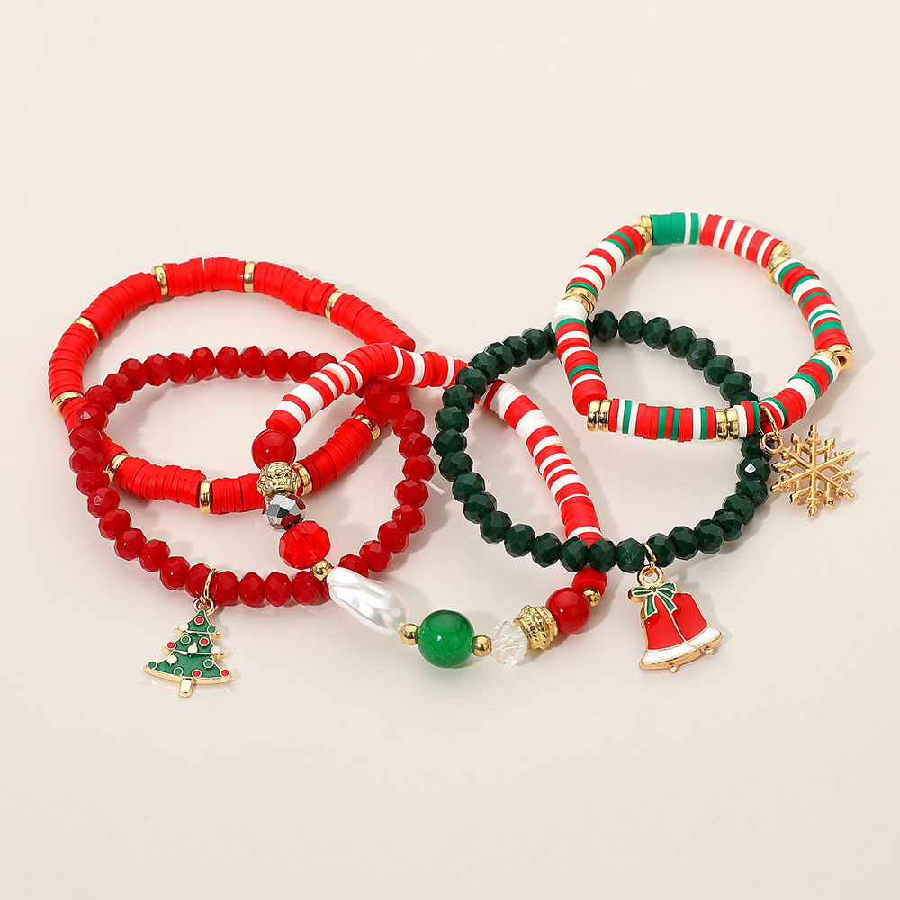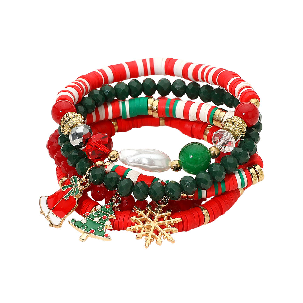 Details • Size : 1.4" H • Stretchable • Festive Christmas charm bracelet set featuring stackable beaded strands with seasonal accents like tree, snowflake, and bell charms. Perfect for holiday parties, celebrations, or gifting, this playful set adds cheerful sparkle and festive spirit to your jewelry collection. • Lead and Nickel Compliant