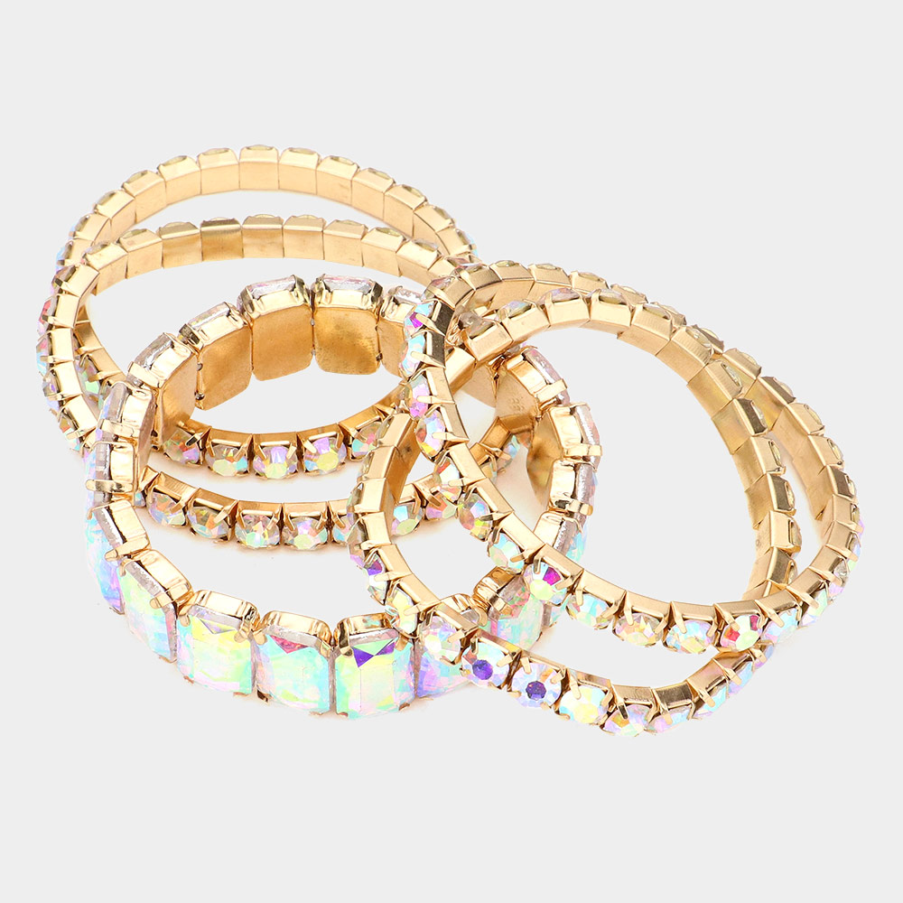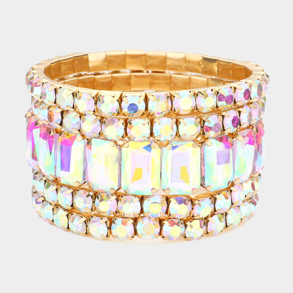 5PCS - Emerald Cut Round Stone Stretch Evening Bracelets 5PCS - Emerald Cut Round Stone Stretch Evening Bracelets 5PCS - Emerald Cut Round Stone Stretch Evening Bracelets