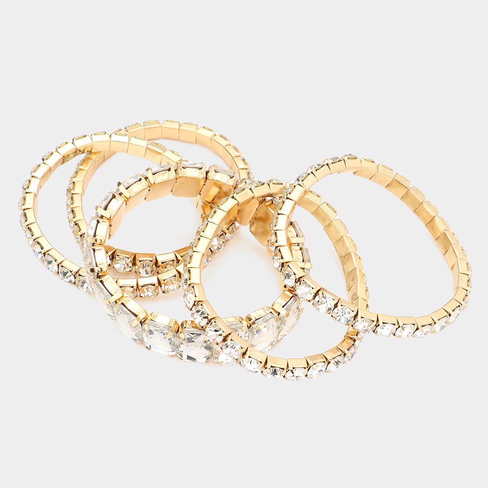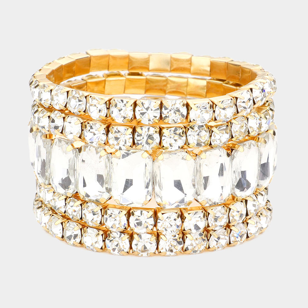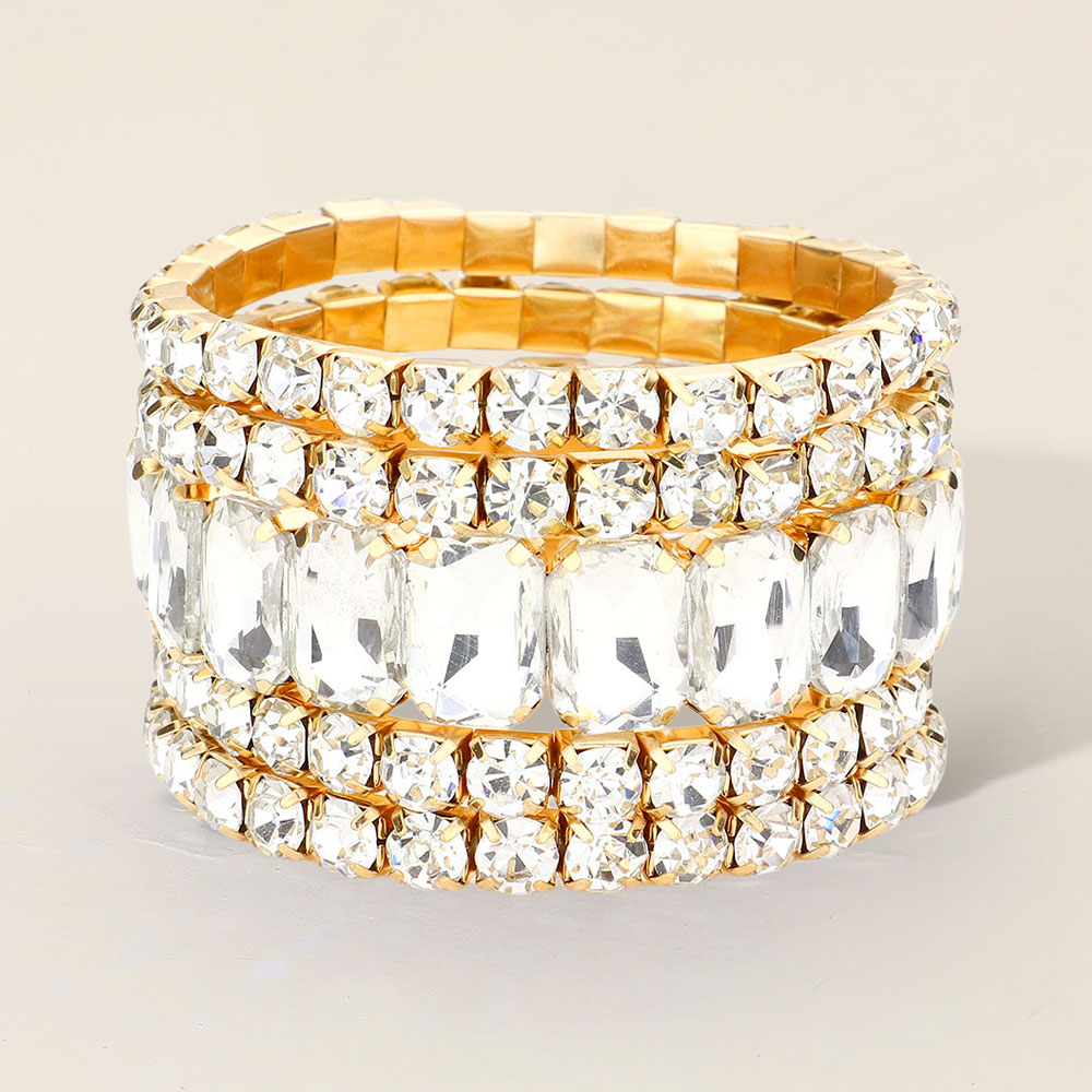 5PCS - Emerald Cut Round Stone Stretch Evening Bracelets