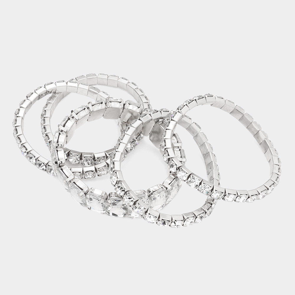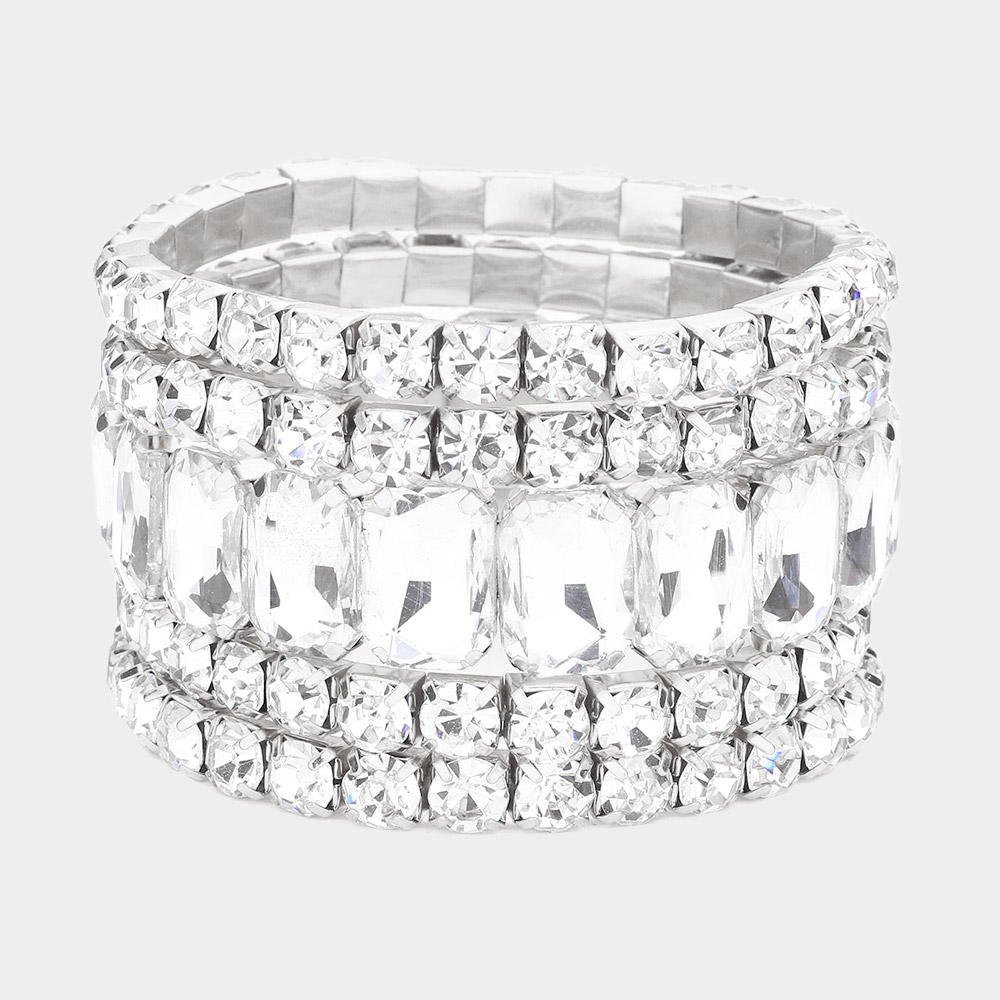5PCS - Emerald Cut Round Stone Stretch Evening Bracelets 5PCS - Emerald Cut Round Stone Stretch Evening Bracelets 5PCS - Emerald Cut Round Stone Stretch Evening Bracelets