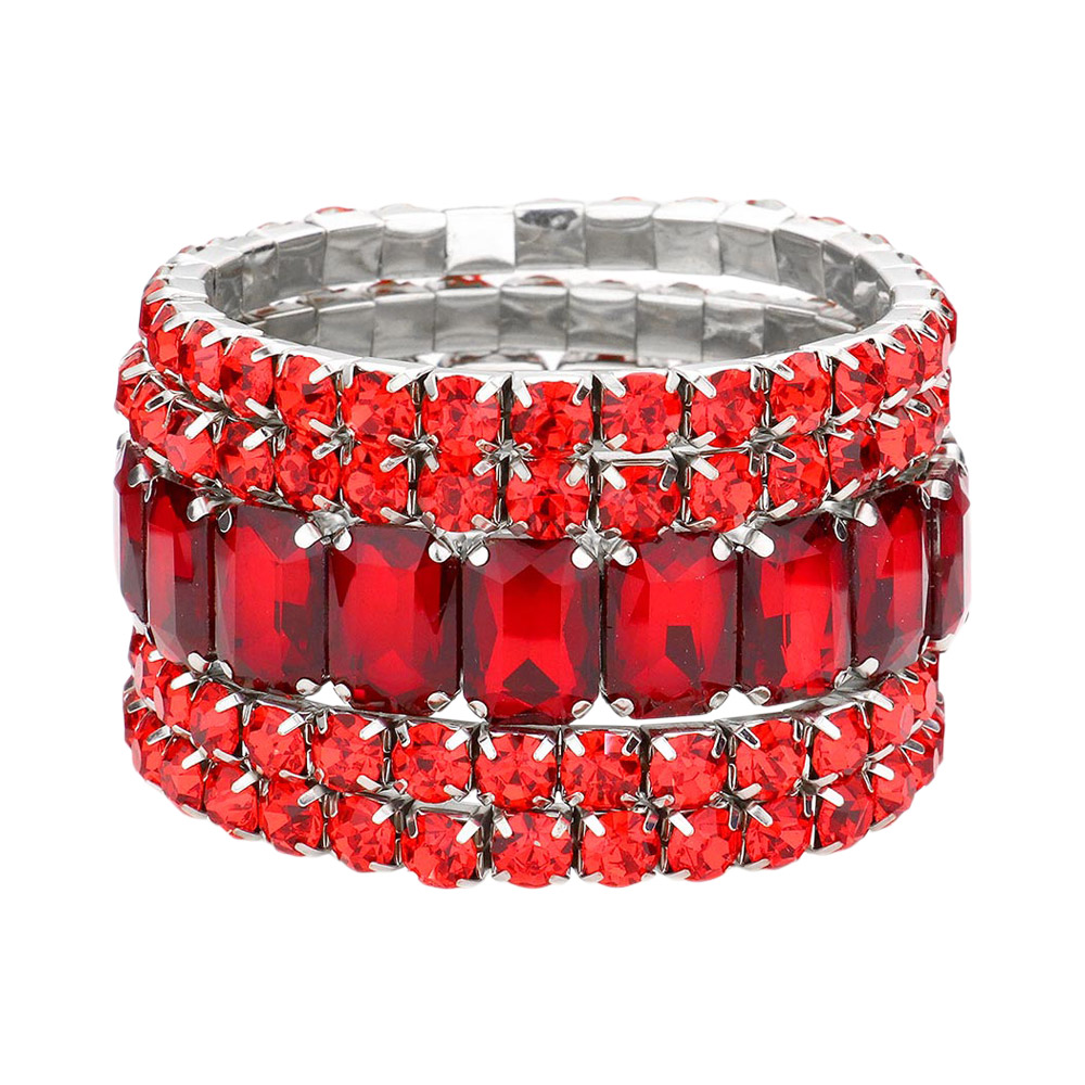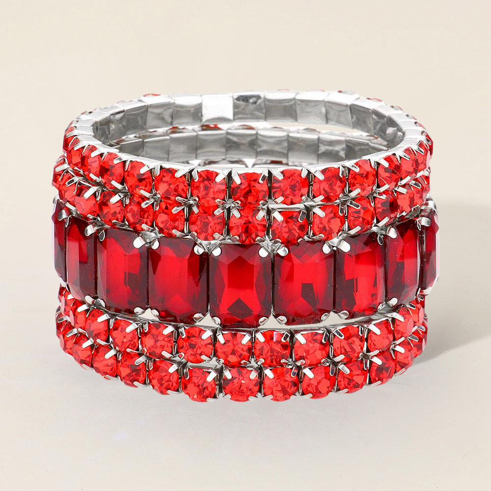 5PCS - Emerald Cut Round Stone Stretch Evening Bracelets 5PCS - Emerald Cut Round Stone Stretch Evening Bracelets