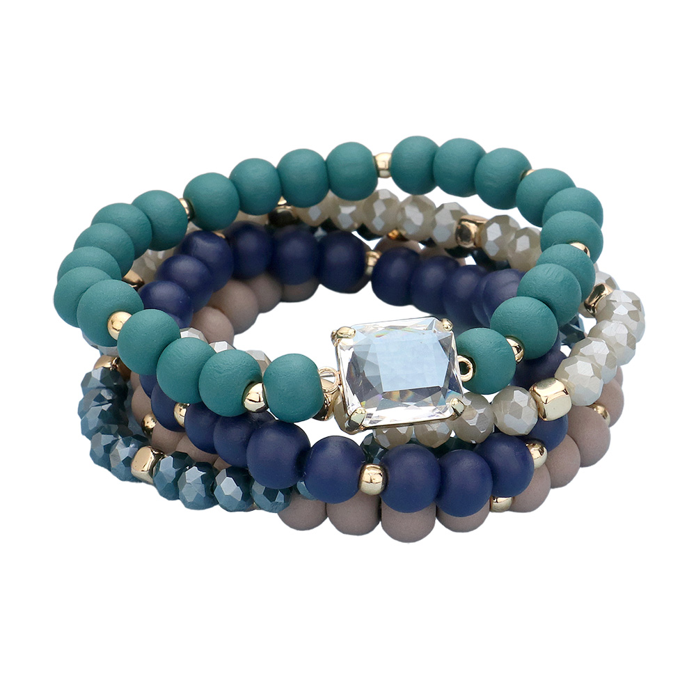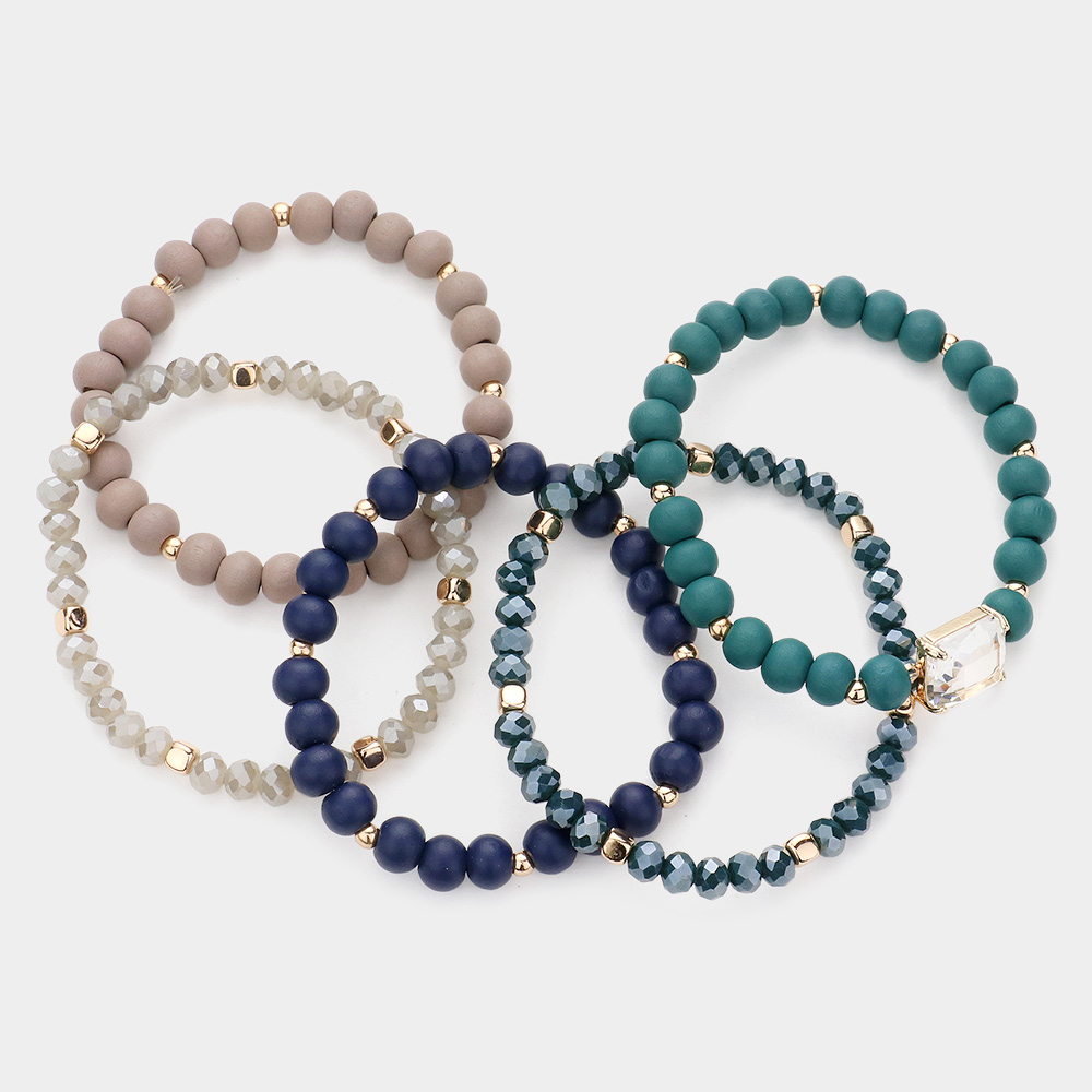 • Enhance your look with this stacked beaded bracelet set featuring smooth matte beads, faceted crystal details, and a central gem-like accent. Designed for versatile wear, these stretch bracelets add effortless elegance, whether styled individually or layered together for a chic and modern touch.