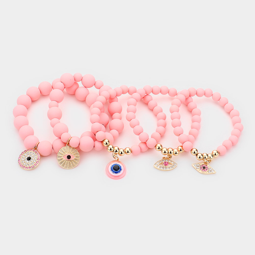 5PCS - Evil Eye Charm Beaded Stretch Bracelets