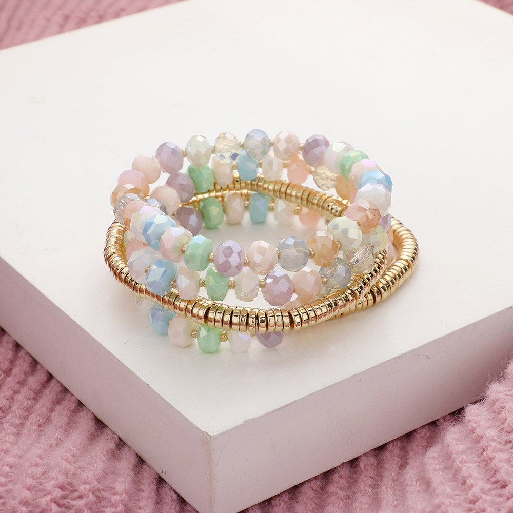 5PCS - Faceted Beaded Heishi Beaded Multi Layered Stretch Bracelet