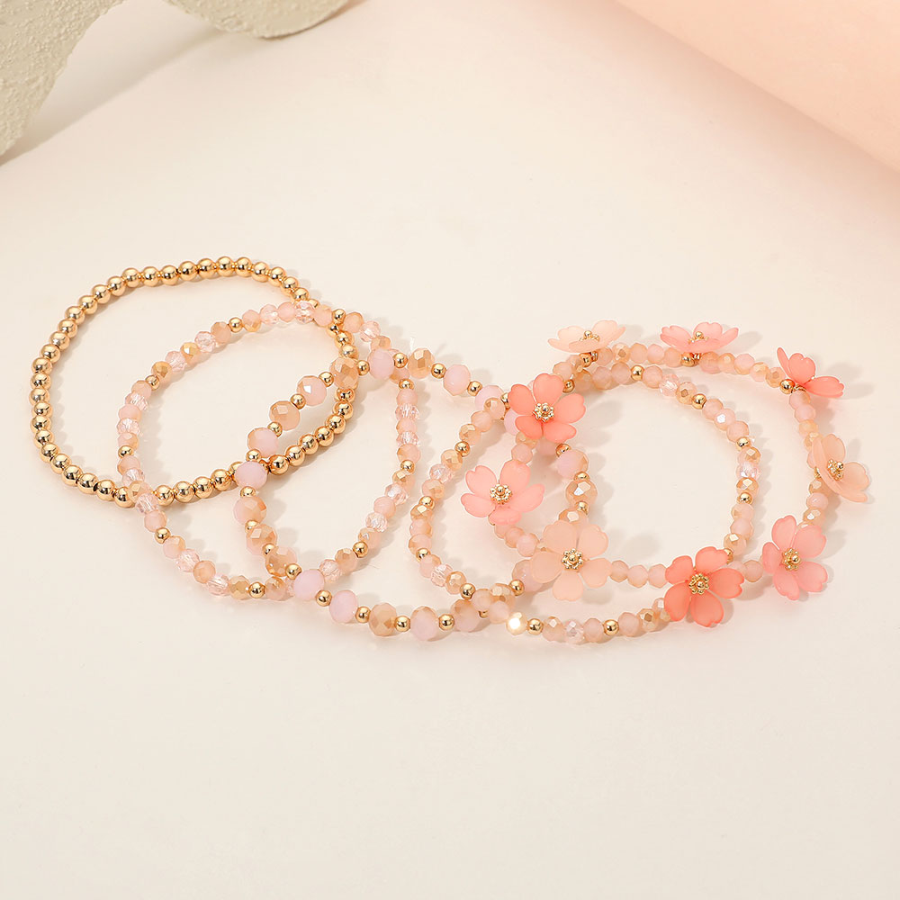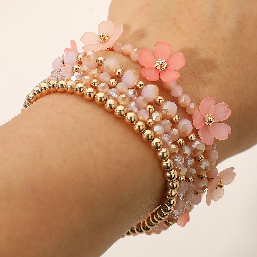 5PCS - Floral Faceted Beaded Stretch Multi Layered Bracelets