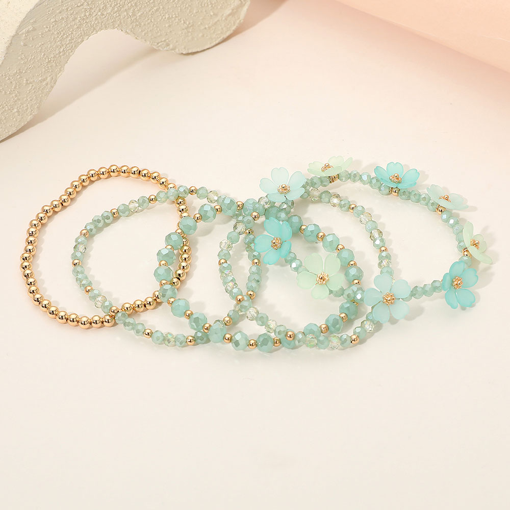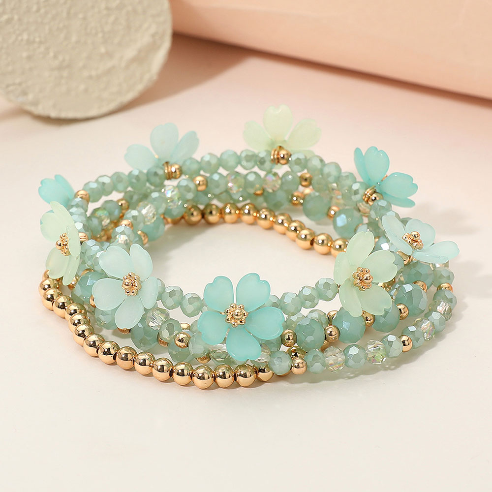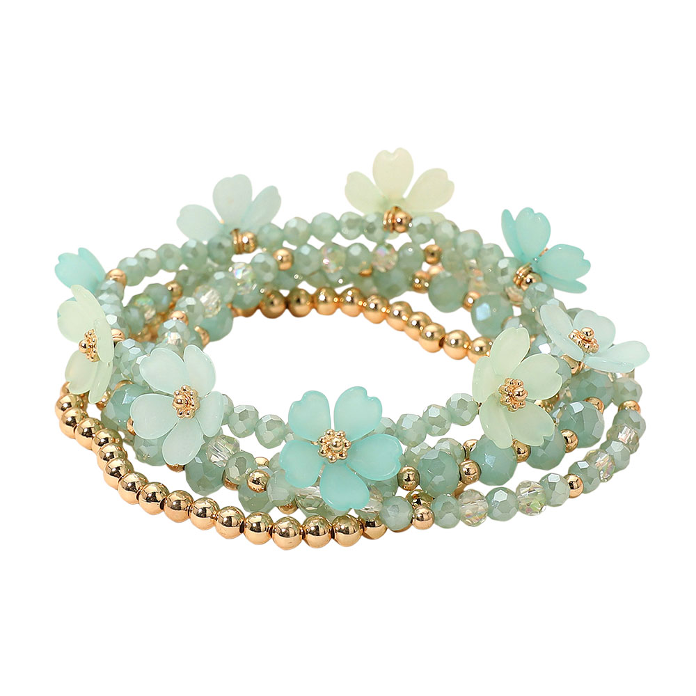 5PCS - Floral Faceted Beaded Stretch Multi Layered Bracelets
