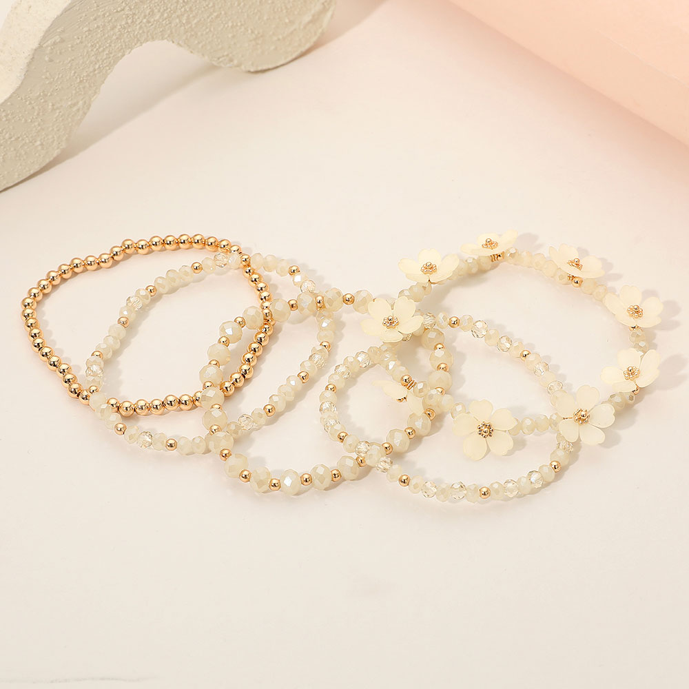 5PCS - Floral Faceted Beaded Stretch Multi Layered Bracelets