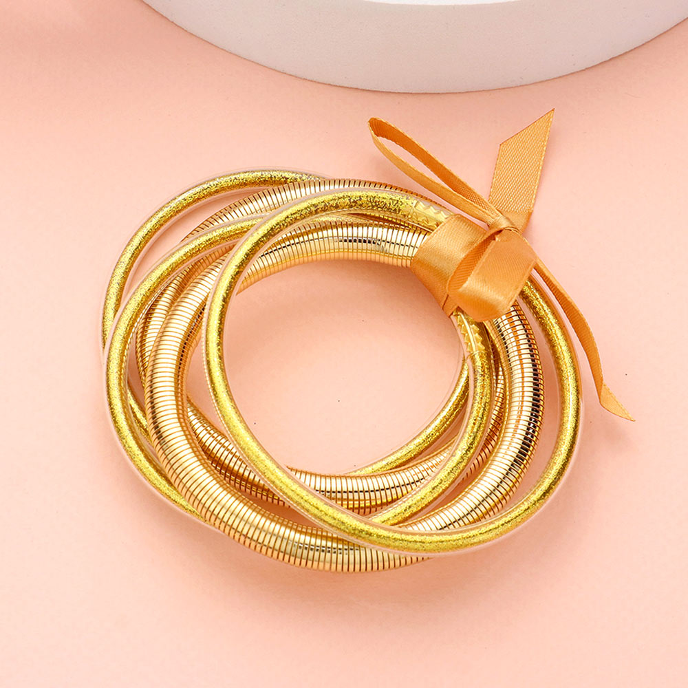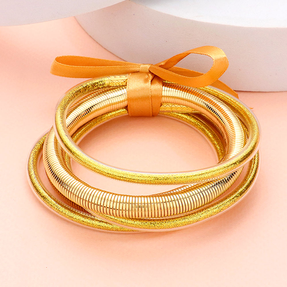 5PCS - Glitter Jelly Tube Metal Elastic Layered Bracelets