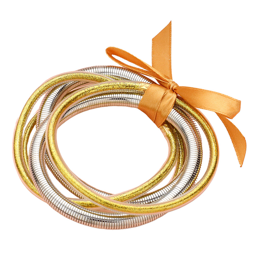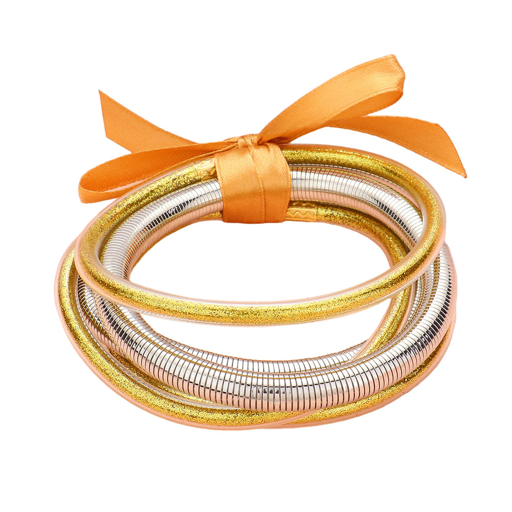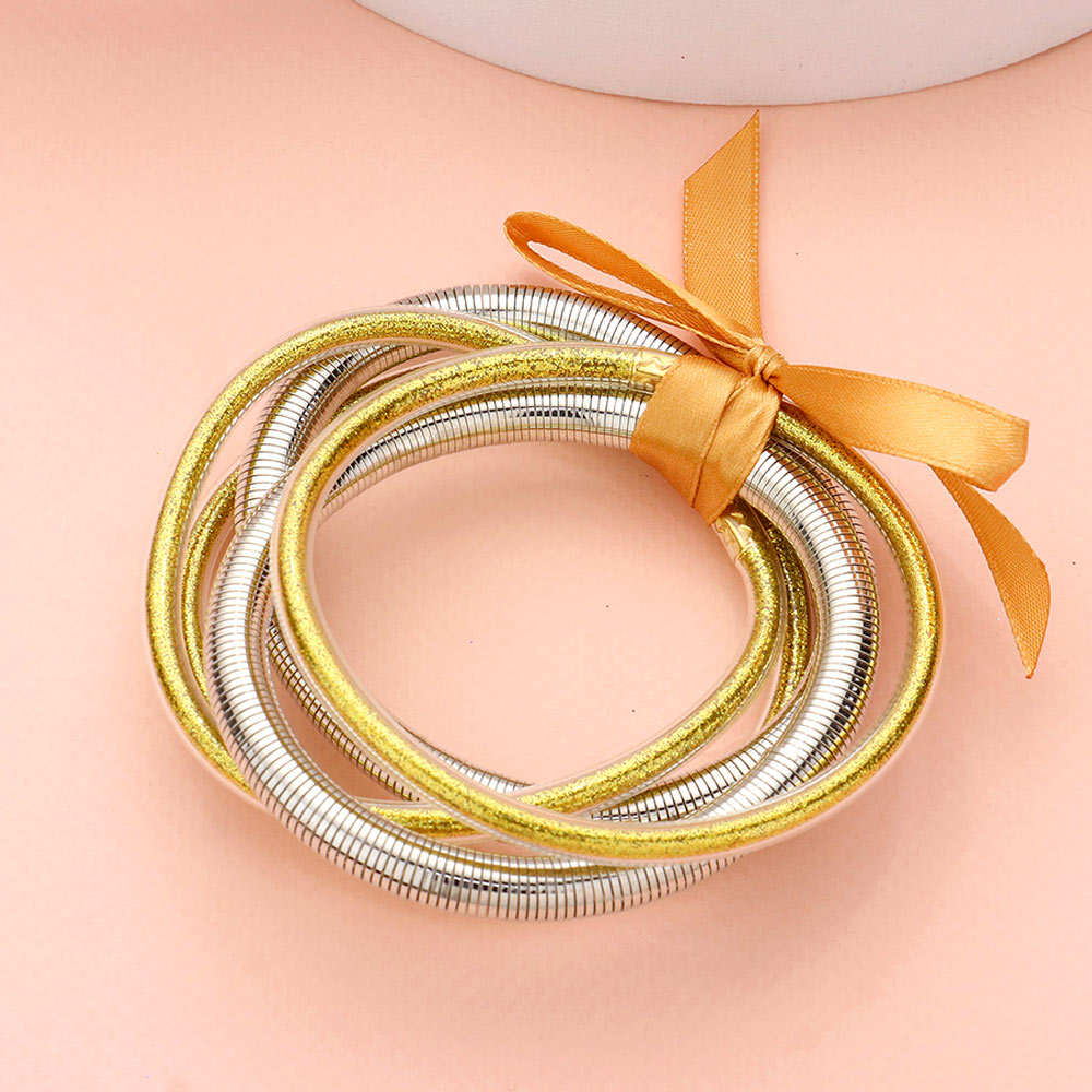 5PCS - Glitter Jelly Tube Metal Elastic Layered Bracelets