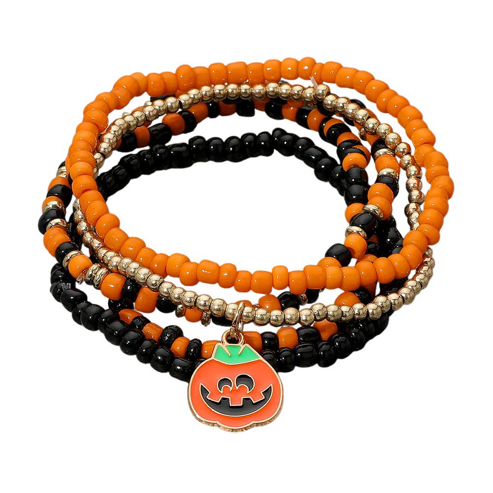 Details • Size : 1" H • Stretchable • Celebrate spooky season with this Halloween beaded bracelet set, featuring festive colors and a playful pumpkin charm. Perfect for parties, trick-or-treat events, or adding a seasonal touch to your outfit with fun and spirited style. • Lead and Nickel Compliant