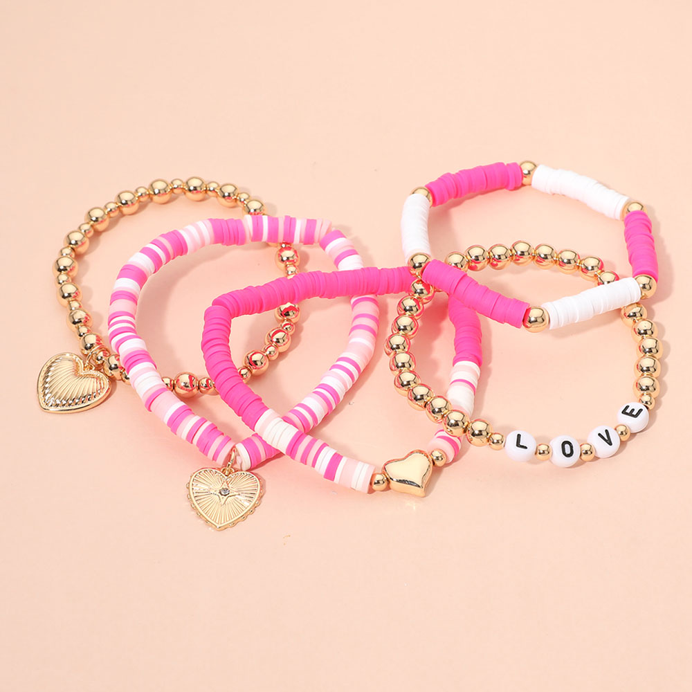 Details • Size : 2" H • Stretchable • Trendy stretch bracelet set featuring layered beaded designs, heart charms, and letter bead detail spelling love. Easy to wear and stack, this playful bracelet set is ideal for everyday styling, gifting, and boutique jewelry collections seeking youthful, expressive accessories. • Lead and Nickel Compliant