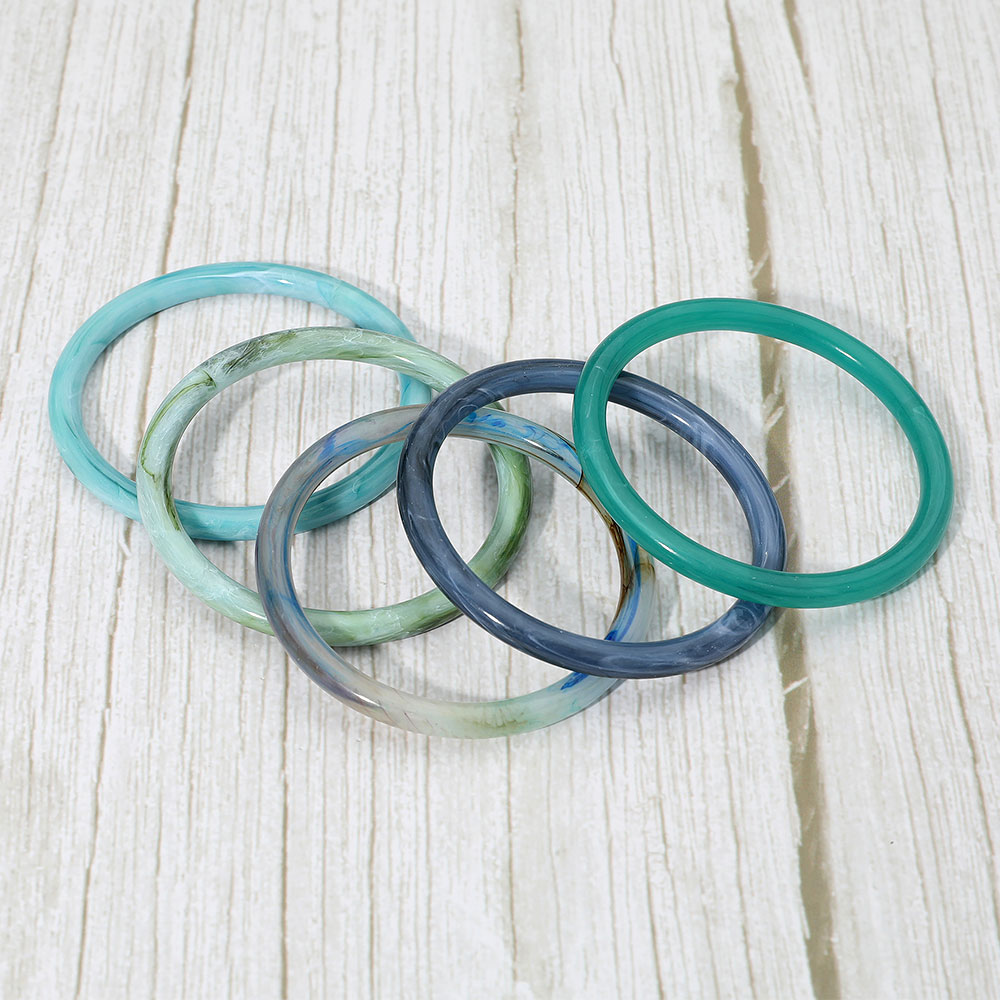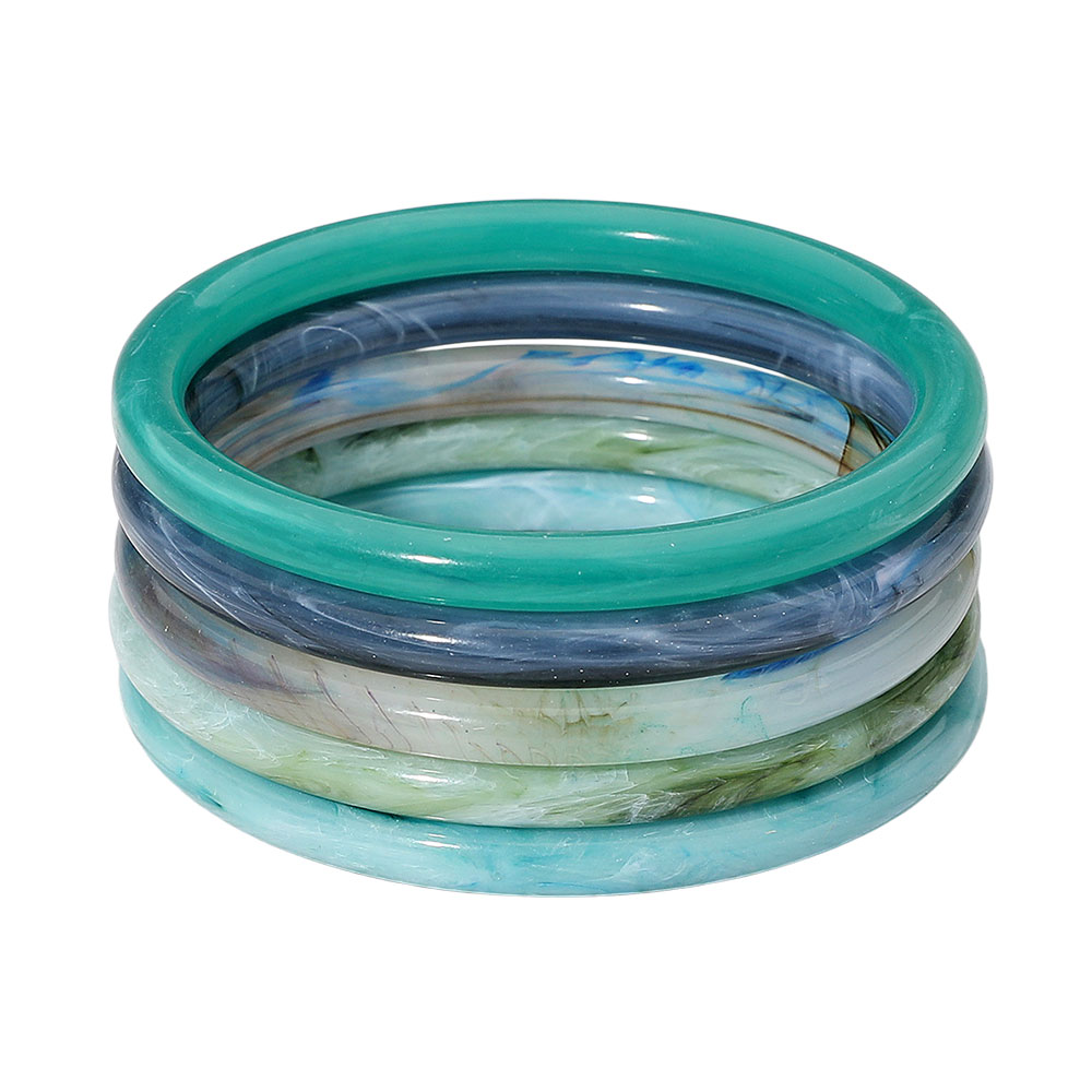 Details • Size : 1.3" H, 2.5" D • Add modern elegance to your look with this stackable resin bangle set. Designed with smooth, polished finishes and a sleek silhouette, these bangles offer effortless style for any occasion. Wear them layered or individually for a refined, contemporary touch.
