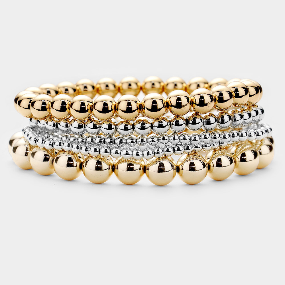 5PCS - Metal Ball Beaded Stretch Bracelets