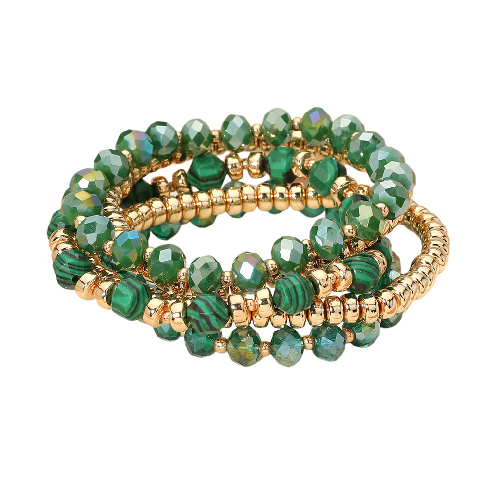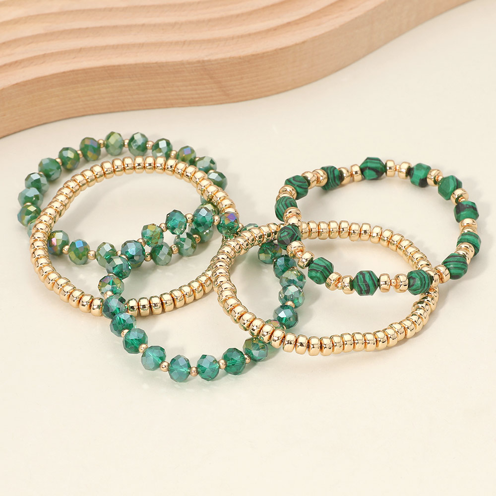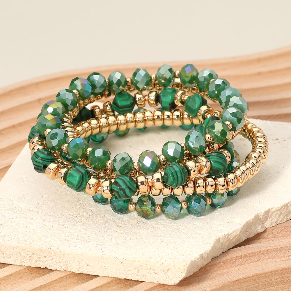 5PCS - Metal Ball Faceted Beaded Stretch Multi Layered Bracelets